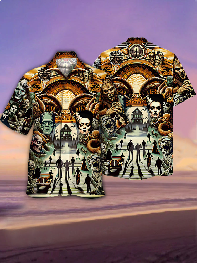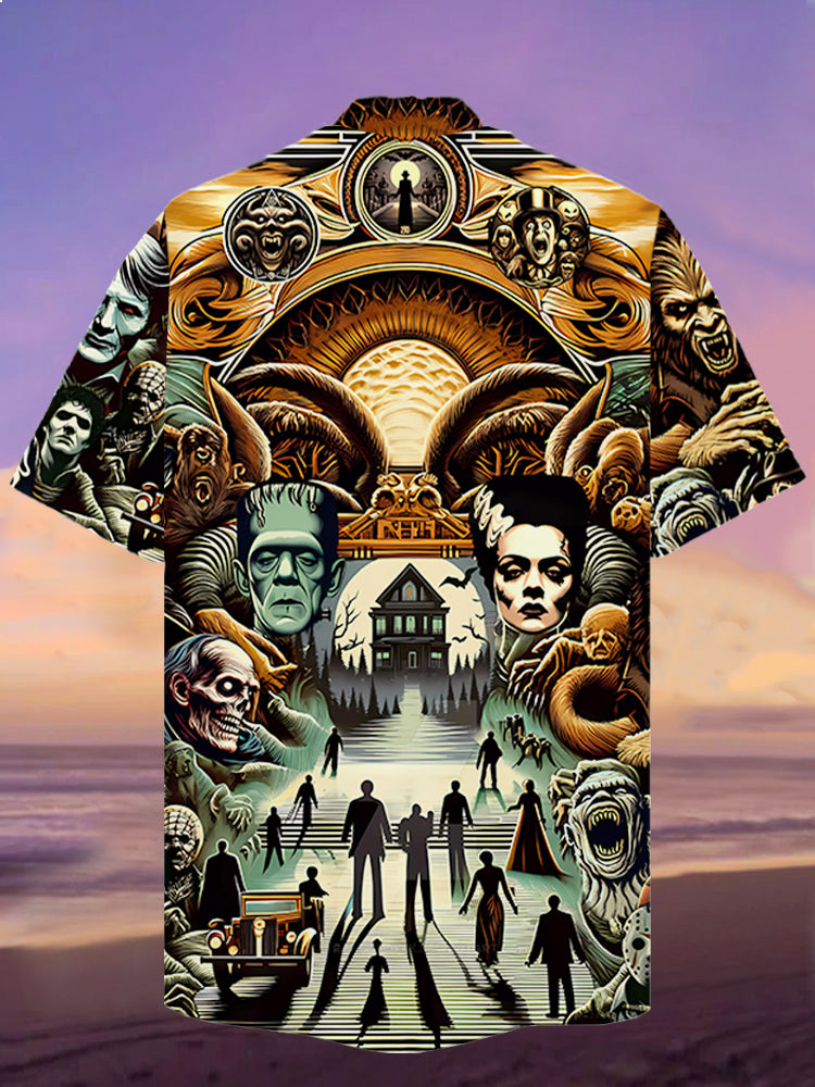 • Eye-Catching Sci-Fi Horror Midnight Banquet Printing Cuban Collar Hawaiian Short Sleeve Shirt