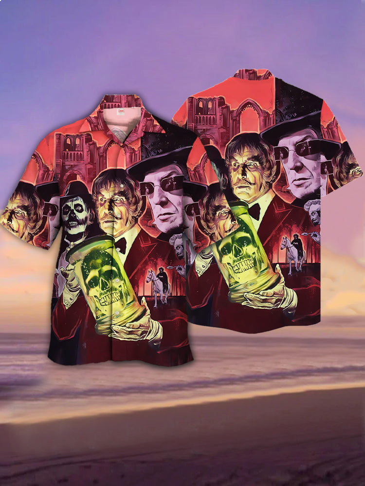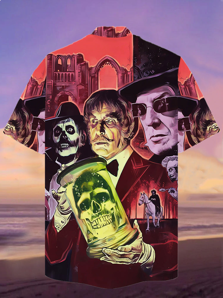 • Eye-Catching Comic Art Horror Characters And Skull Printing Cuban Collar Hawaiian Short Sleeve Shirt