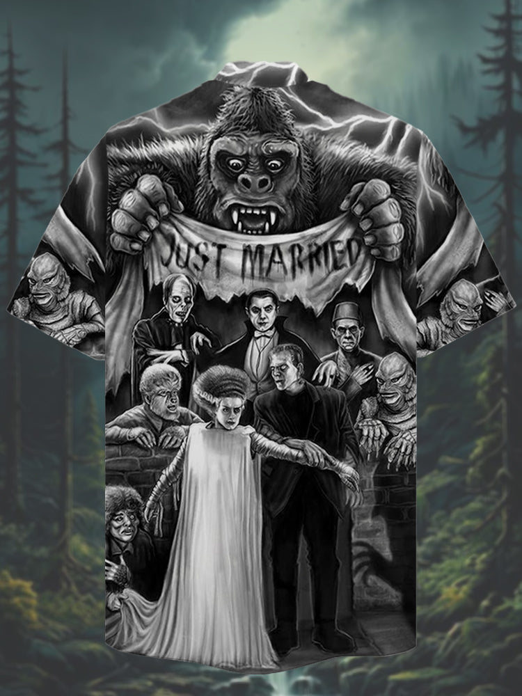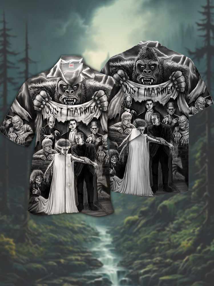 Eye-Catching Horror Wedding Printing Cuban Collar Hawaiian Short Sleeve Shirt
