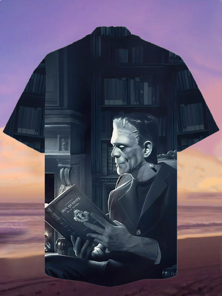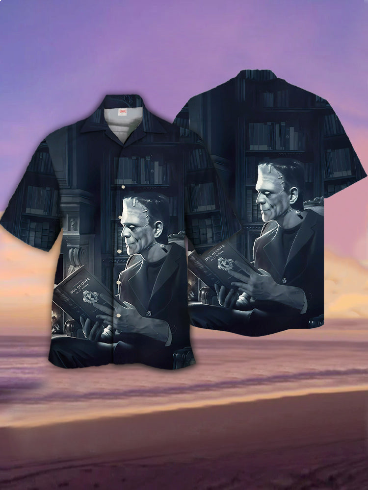 Eye-Catching Classic Horror Character Reading Printing Cuban Collar Hawaiian Short Sleeve Shirt
