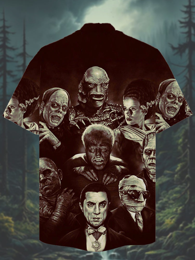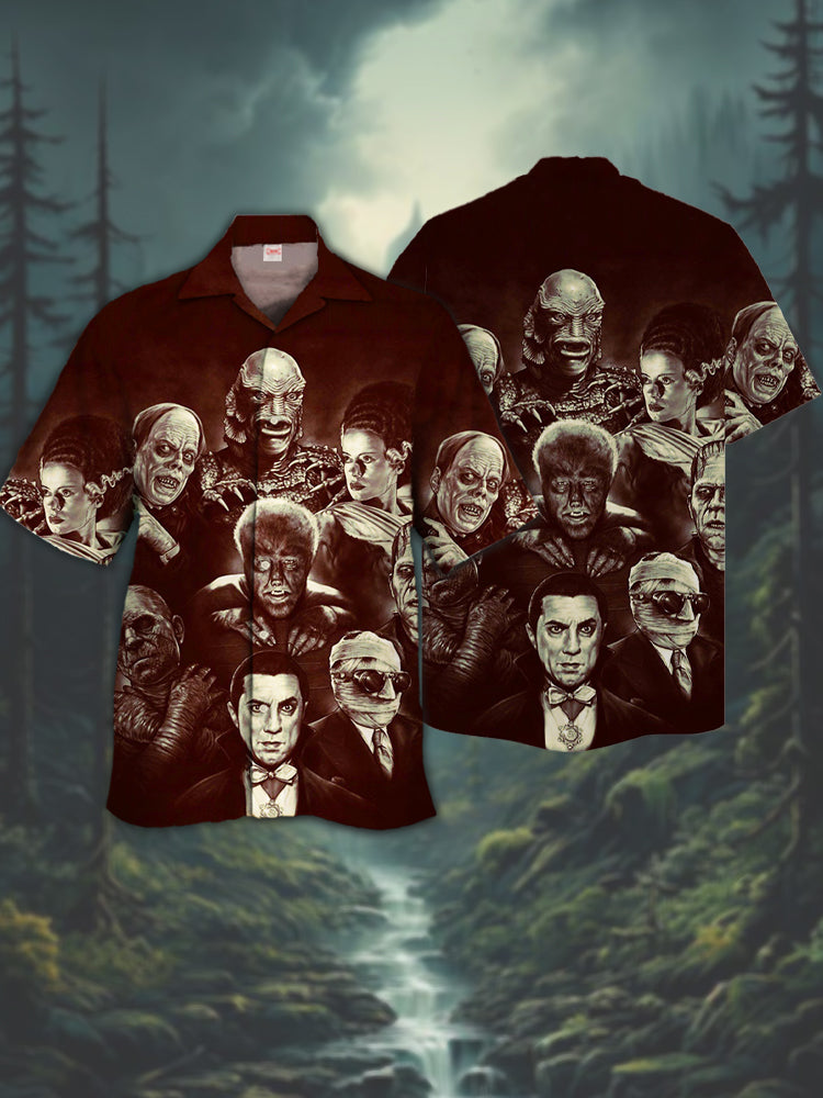 • Eye-Catching Classic Horror Monsters And Horror Characters Printing Cuban Collar Hawaiian Short Sleeve Shirt