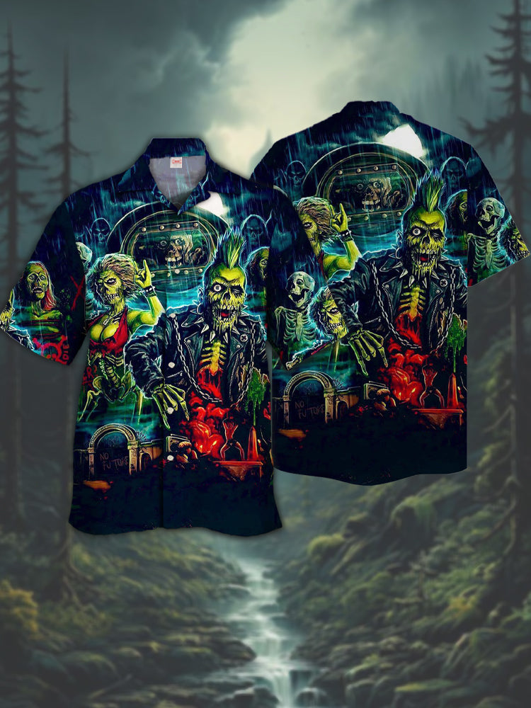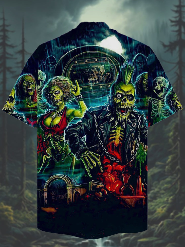 • Eye-Catching Classic Horror Punk Zombies Printing Cuban Collar Hawaiian Short Sleeve Shirt