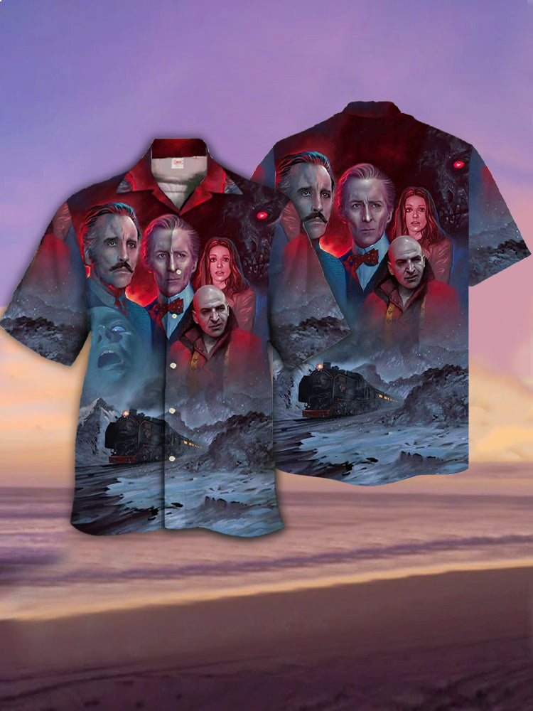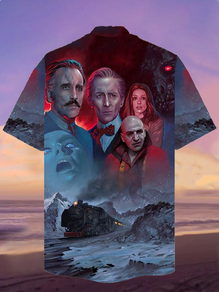 • Eye-Catching Classic Horror Characters And Trains Printing Cuban Collar Hawaiian Short Sleeve Shirt