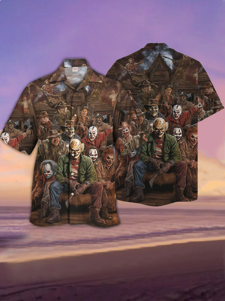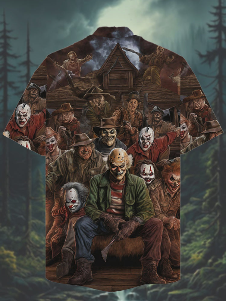 • Eye-Catching Horror Village Horror Characters Printing Cuban Collar Hawaiian Short Sleeve Shirt