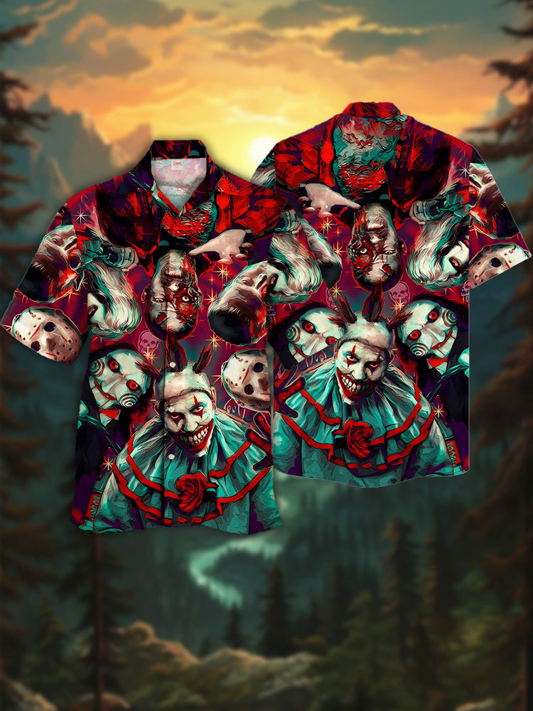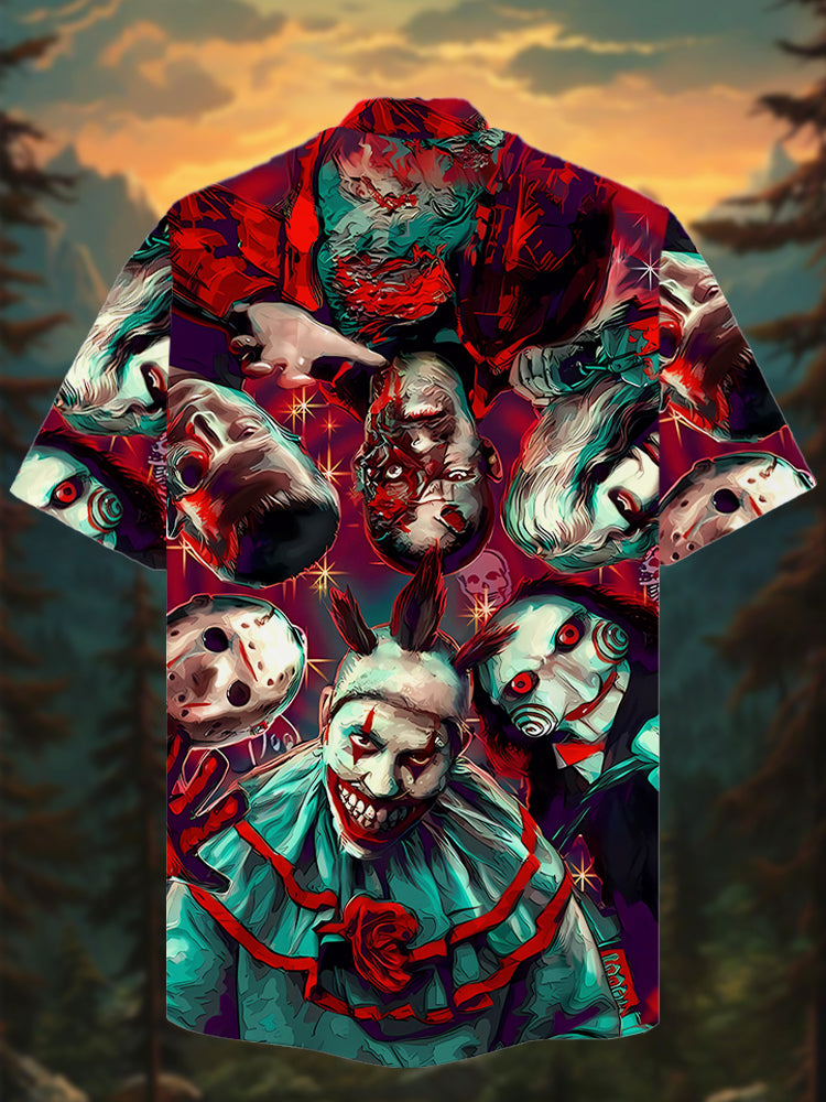 • Eye-Catching Thriller Style Cool Horror Party Characters Printing Cuban Collar Hawaiian Short Sleeve Shirt