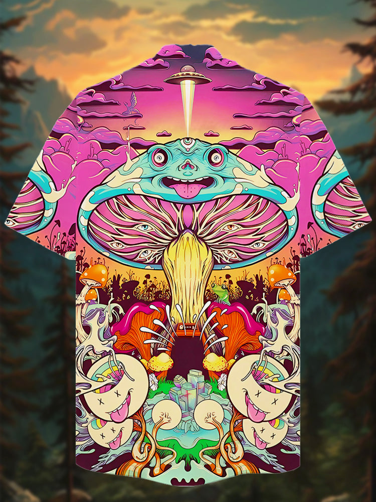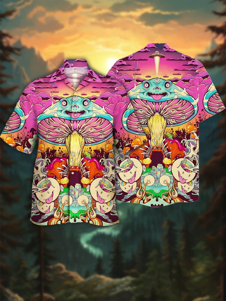 Eye-Catching Colorful Psychedelic Mushrooms Forest Mushrooms Party Printing Cuban Collar Hawaiian Short Sleeve Shirt