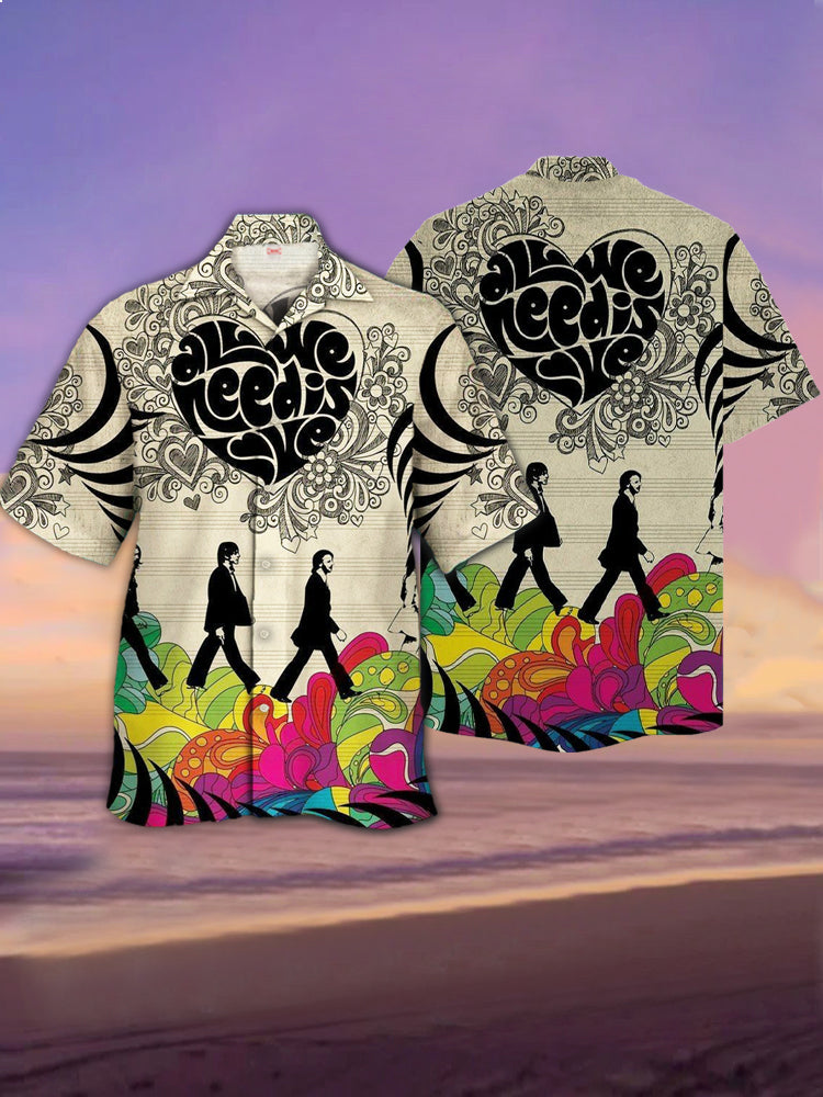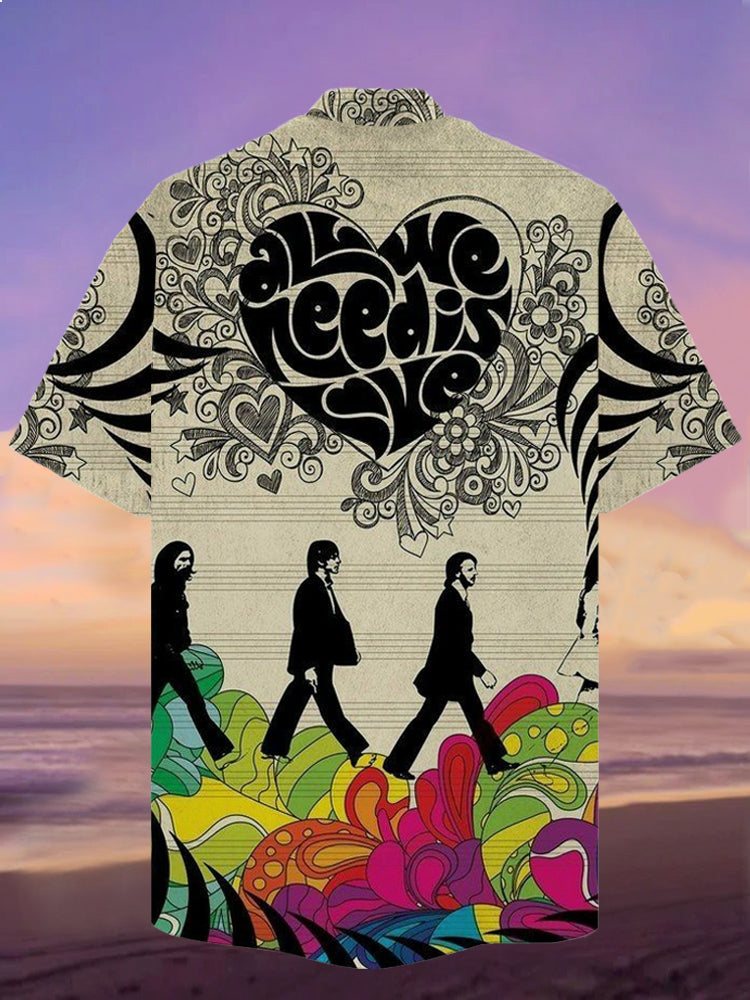 Eye-Catching Vintage Band Poster And Tattoo Printing Cuban Collar Hawaiian Short Sleeve Shirt