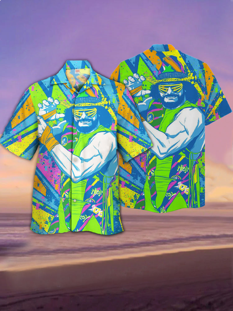 • Eye-Catching Colorful Boxer Poster Printing Cuban Collar Hawaiian Short Sleeve Shirt