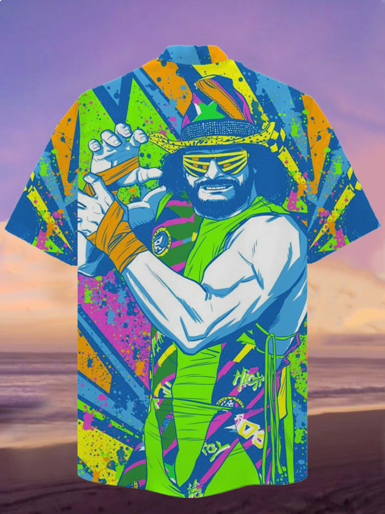 Eye-Catching Colorful Boxer Poster Printing Cuban Collar Hawaiian Short Sleeve Shirt