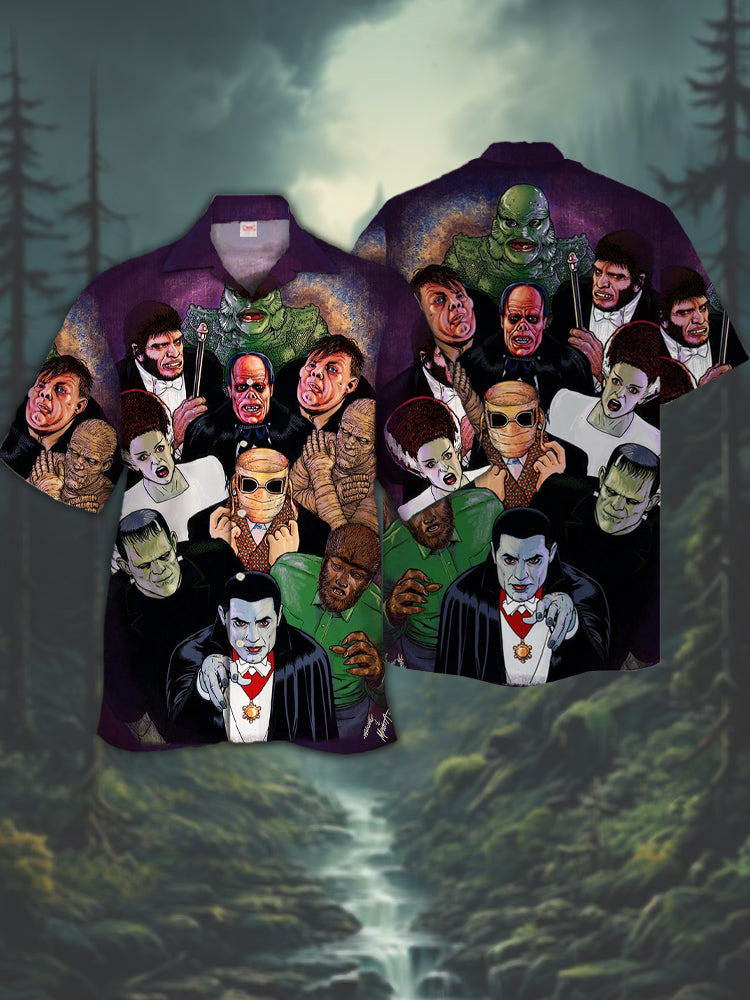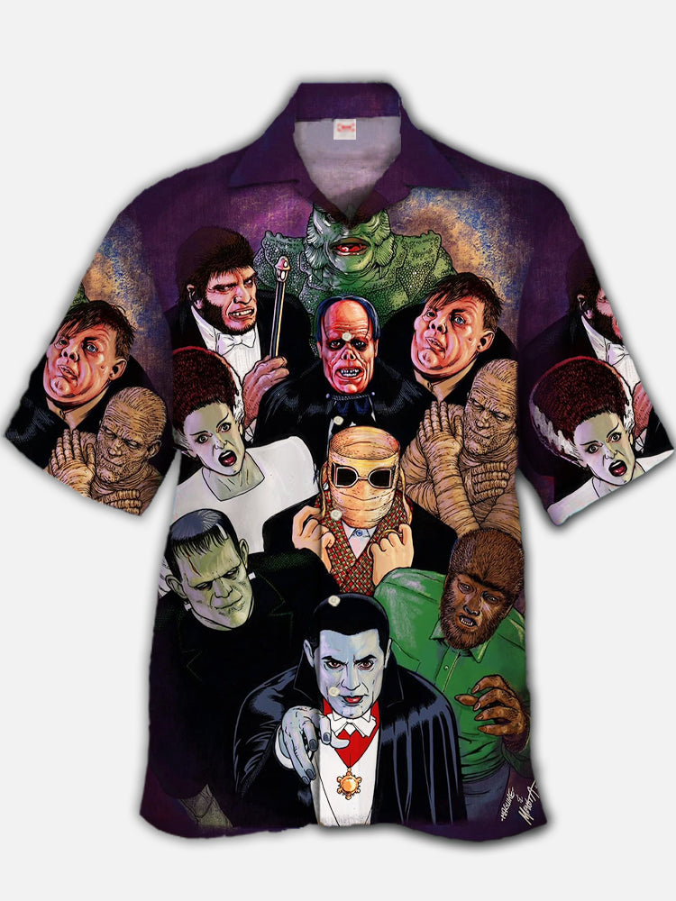 • Eye-Catching Classic Movie Comic Art Monsters Characters Printing Cuban Collar Hawaiian Short Sleeve Shirt