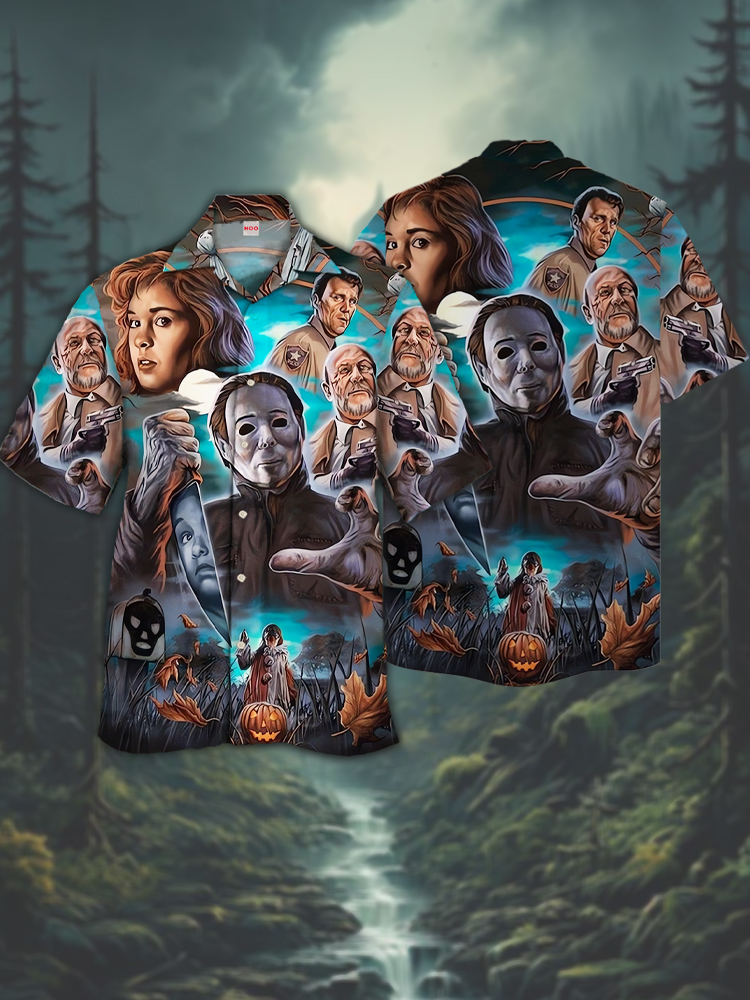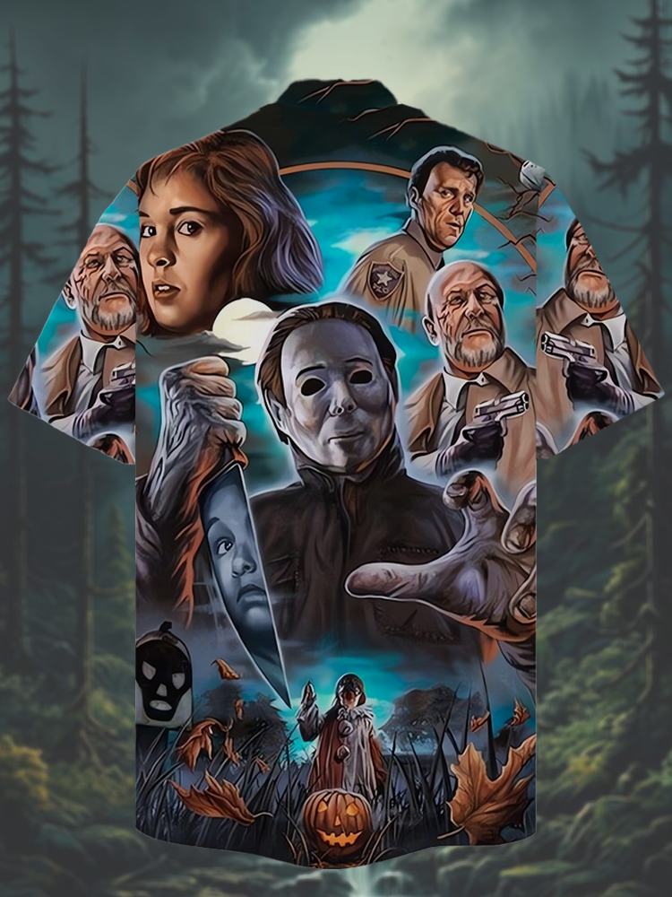 • Eye-Catching Retro Classic Horror Characters Halloween Printing Cuban Collar Hawaiian Short Sleeve Shirt