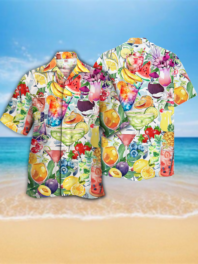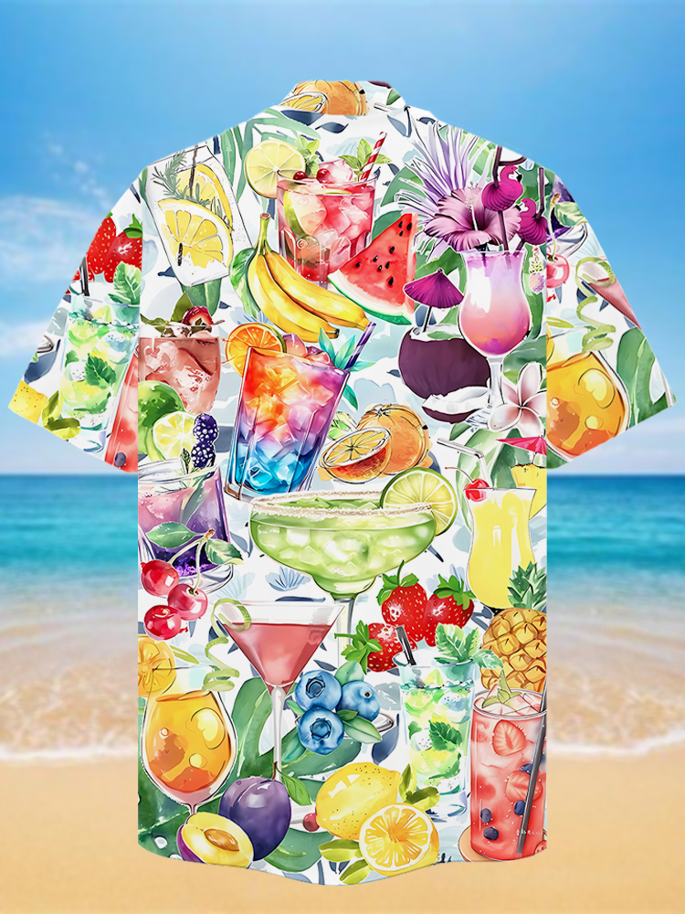 • Eye-Catching Refreshing Summer Drinks Colorful Cocktails Printing Cuban Collar Hawaiian Short Sleeve Shirt