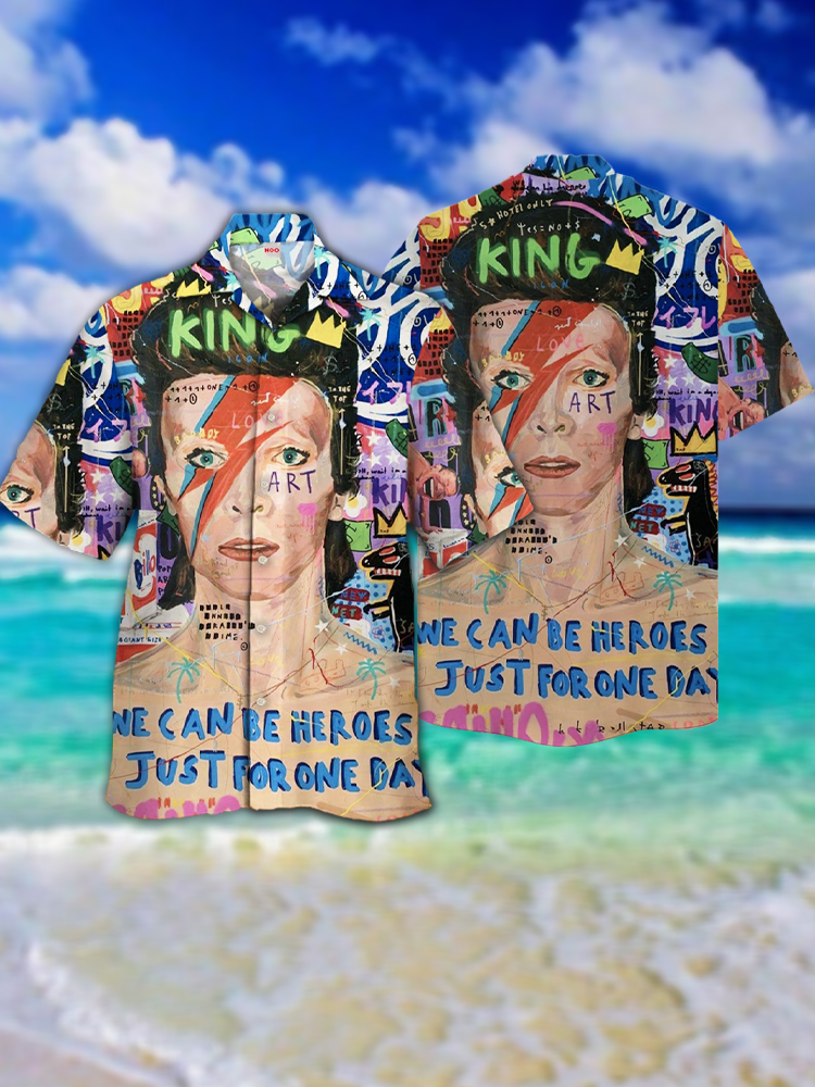 • Eye-Catching Abstract Pop Art Graffiti And Portrait Poster Printing Cuban Collar Hawaiian Short Sleeve Shirt