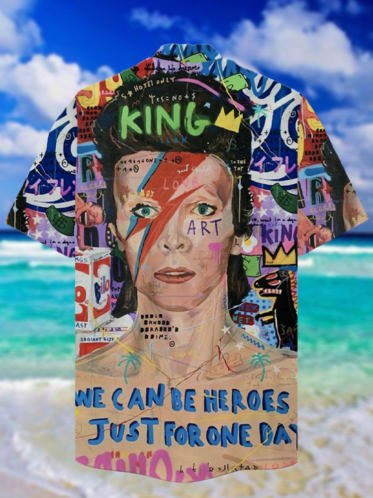 Eye-Catching Abstract Pop Art Graffiti And Portrait Poster Printing Cuban Collar Hawaiian Short Sleeve Shirt