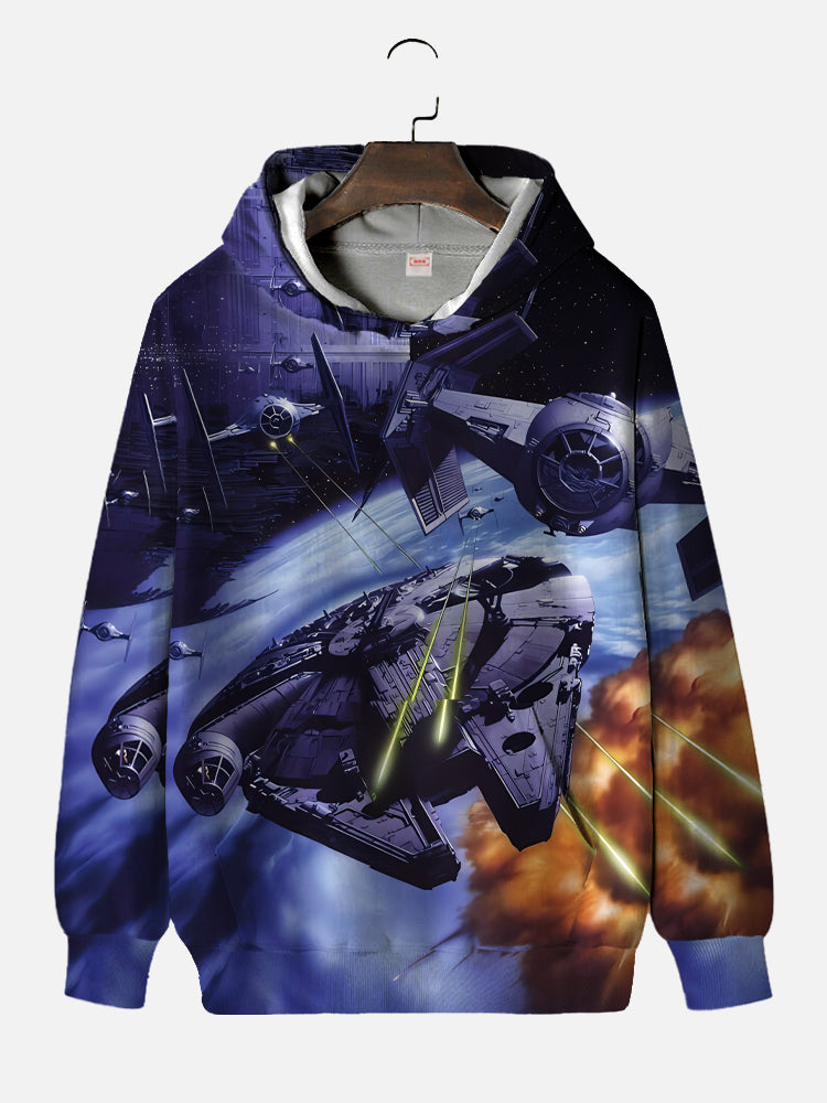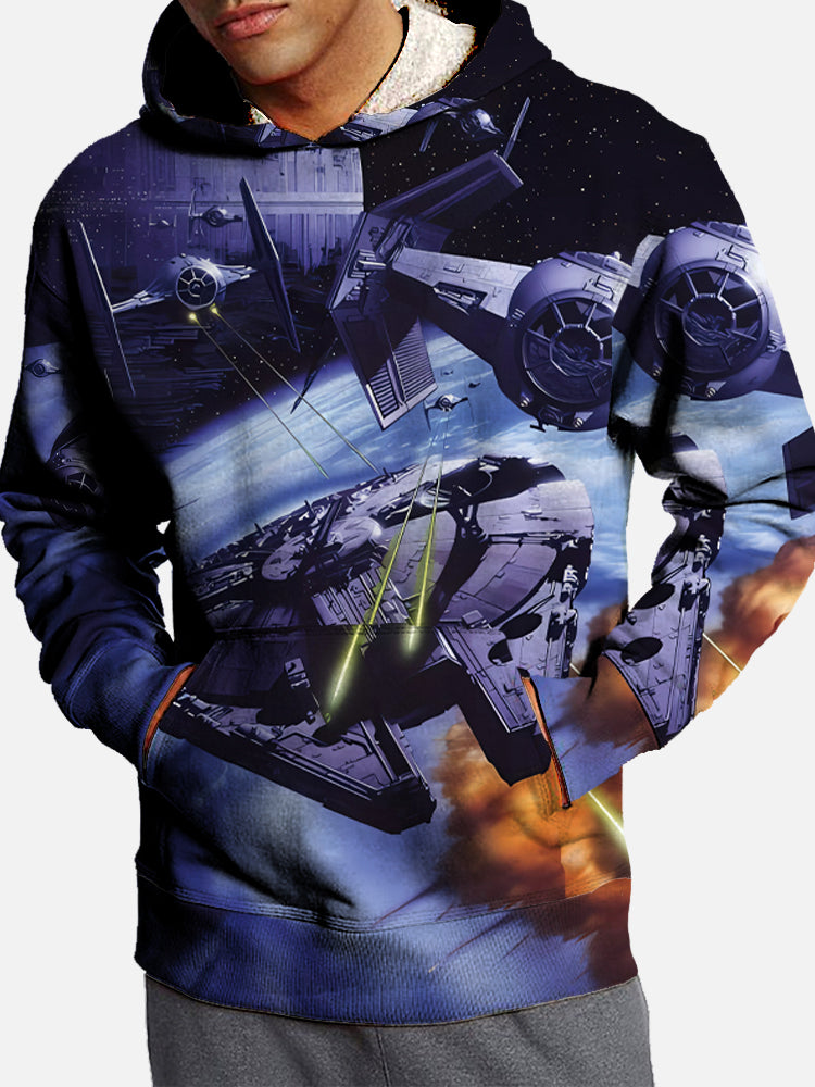 Eye-Catching Sci-Fi Space Fighter War Printing Hooded Sweatshirt