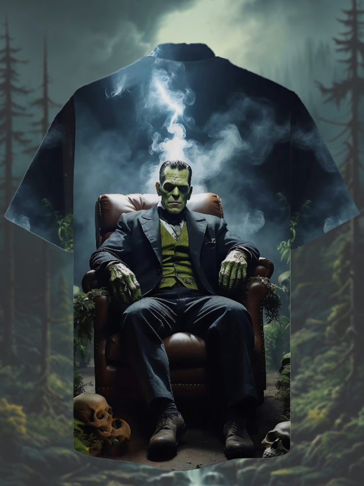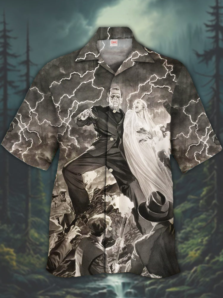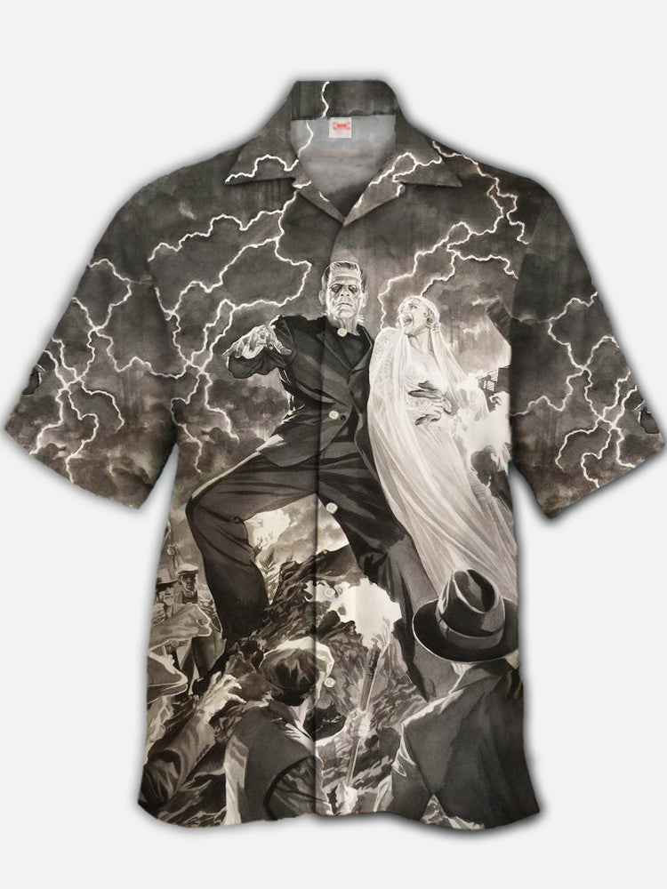Eye-Catching Stunning Style Horror Characters Under Lightning Printing Cuban Collar Hawaiian Short Sleeve Shirt