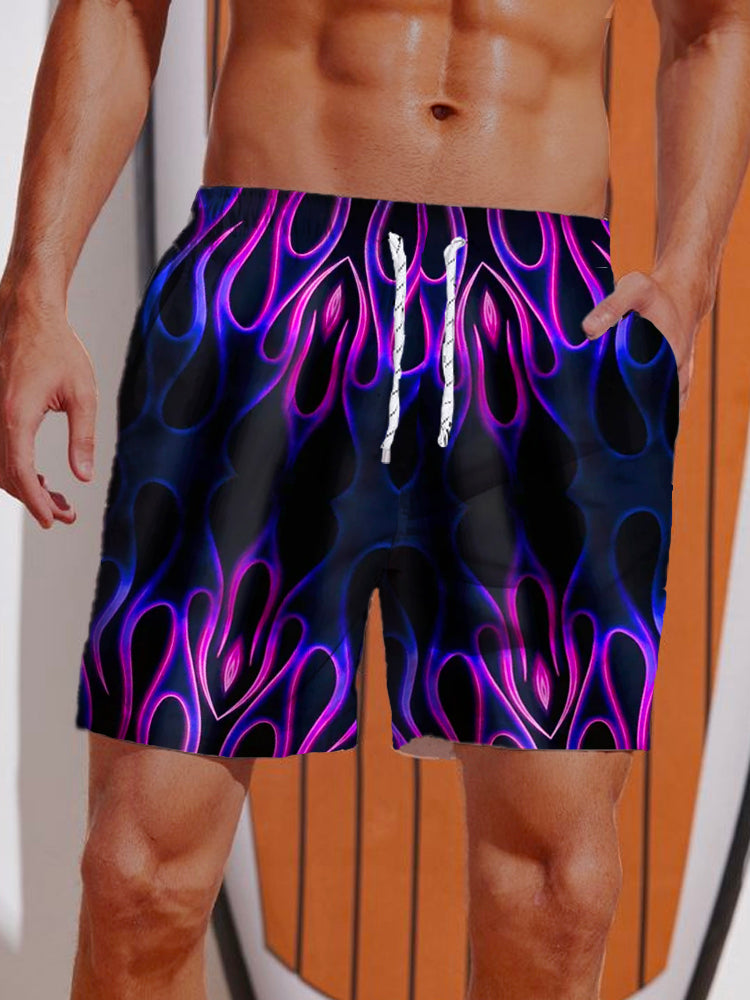 Amazing Style Purple-Black Fire Flame Pattern Printing Shorts