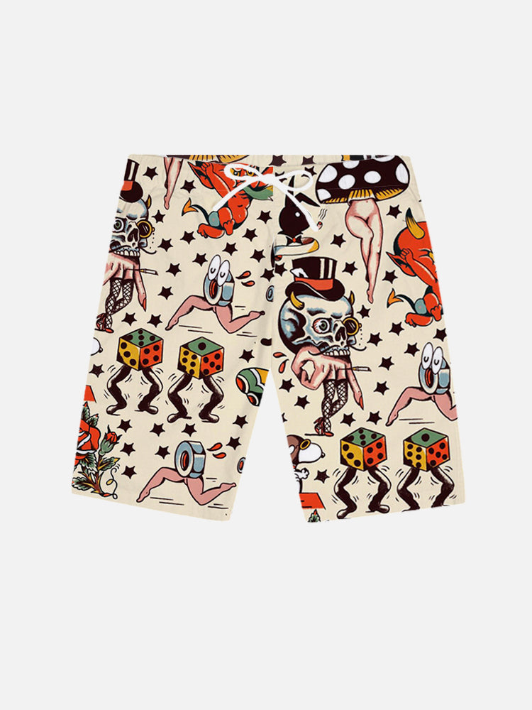 Cartoon Old School Tattoos Pattern Printing Shorts