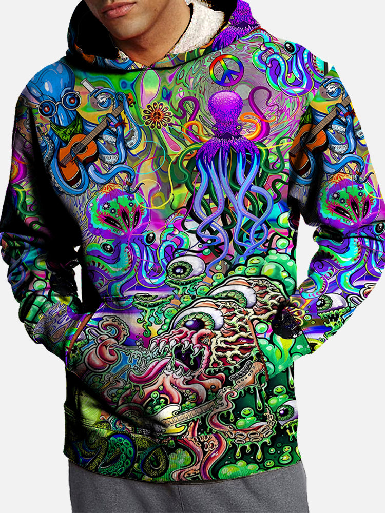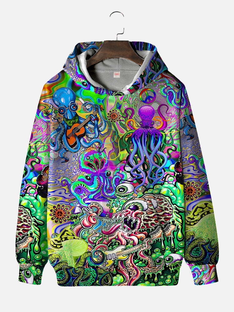 Eye-Catching Psychedelic Hippie Funny Octopus Printing Hooded Sweatshirt