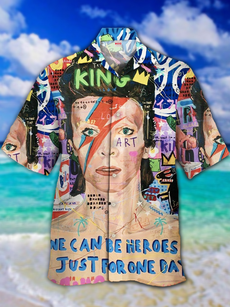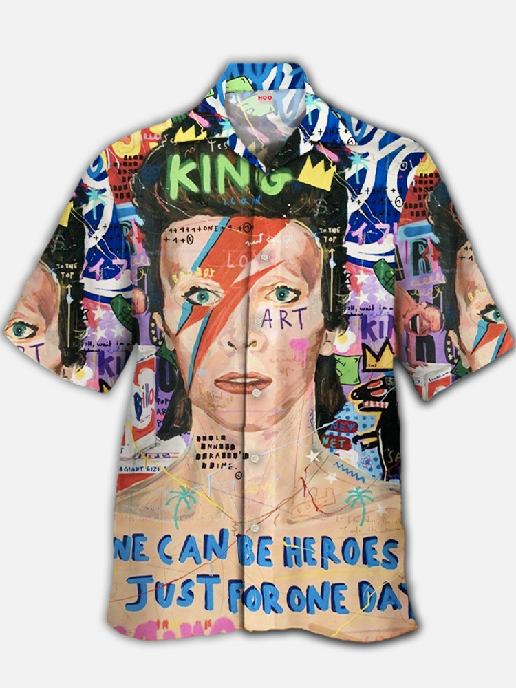 Eye-Catching Abstract Pop Art Graffiti And Portrait Poster Printing Cuban Collar Hawaiian Short Sleeve Shirt