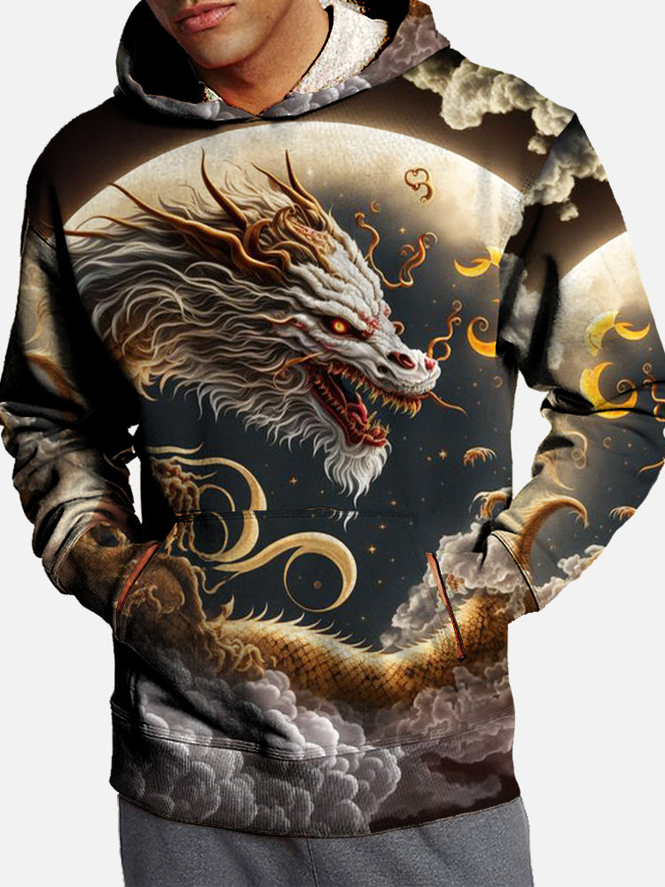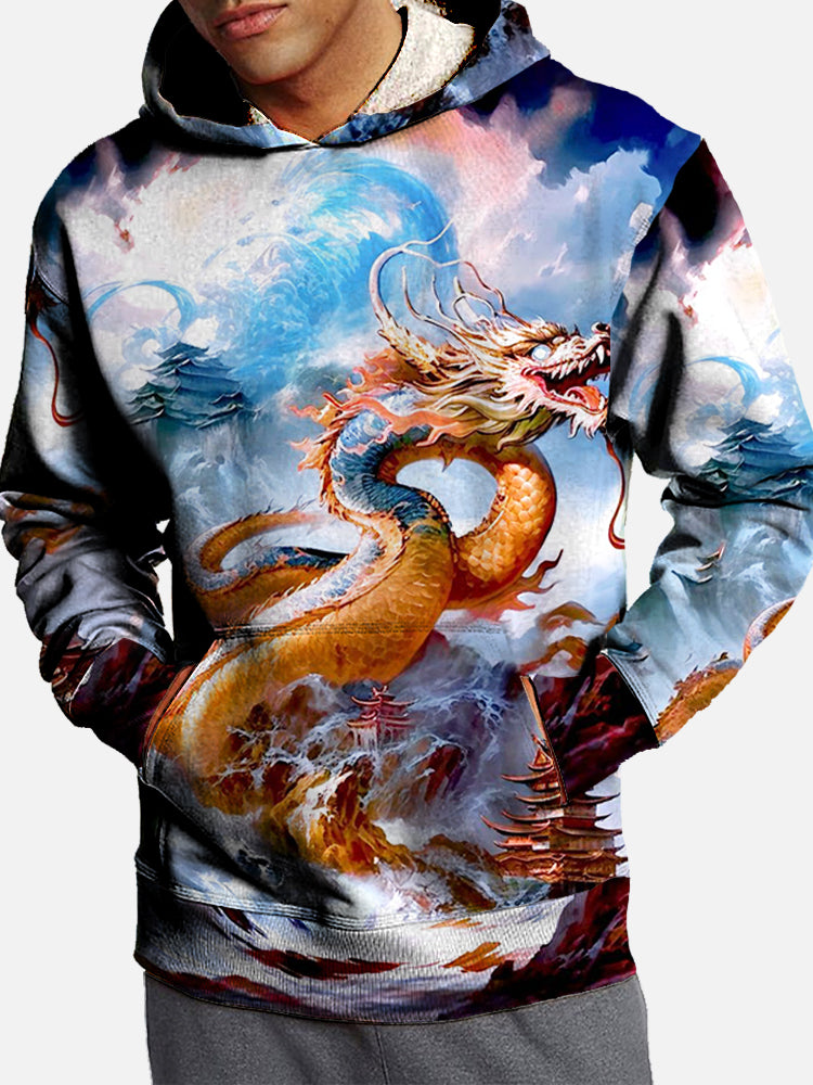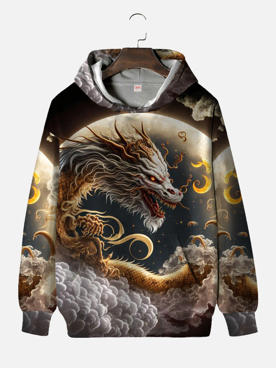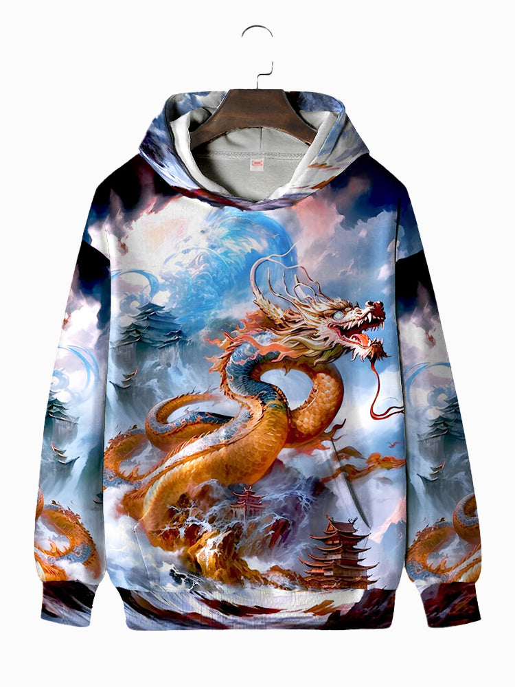 Mythical Mighty Domineering Golden Dragon Printing Hooded Sweatshirt