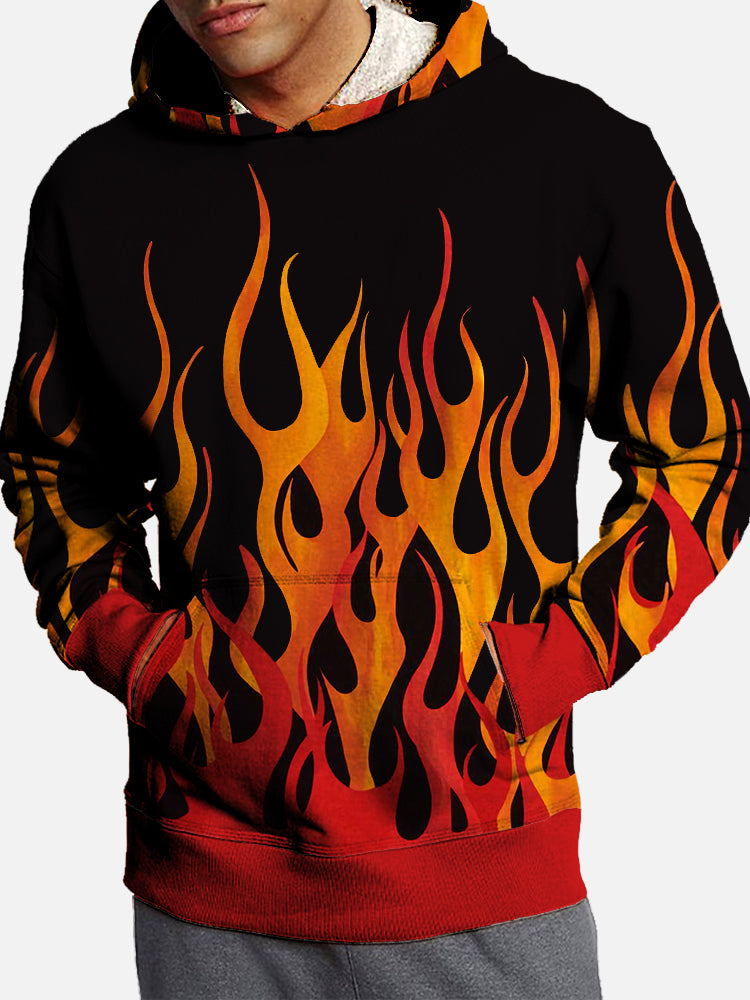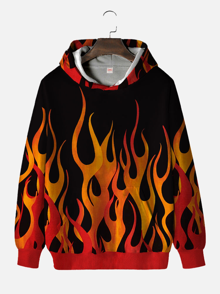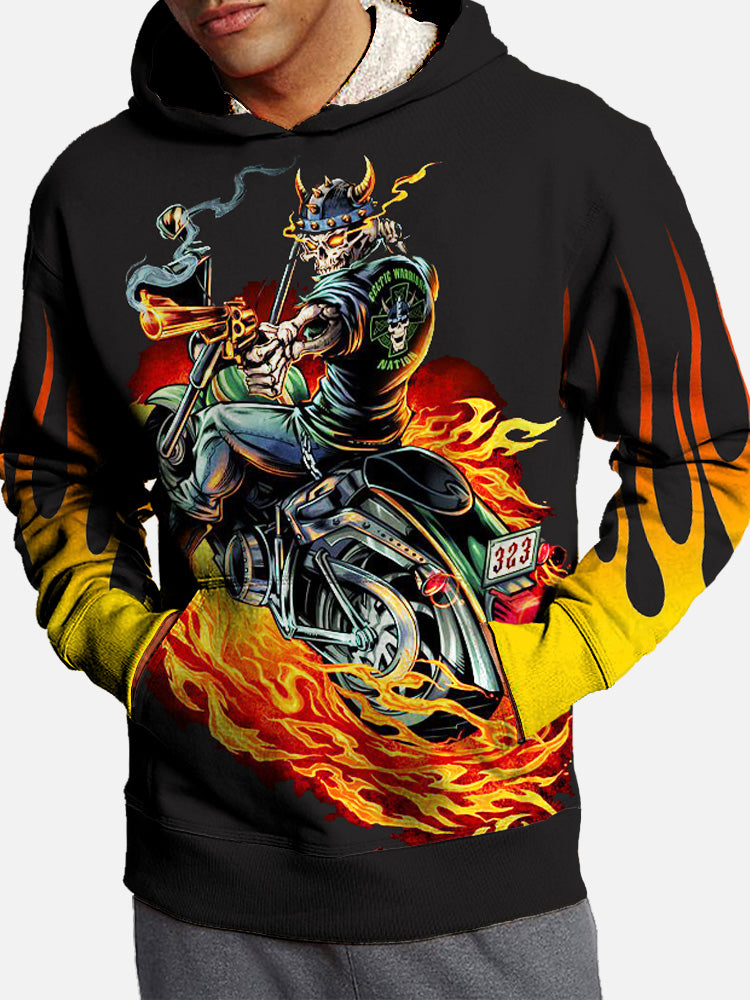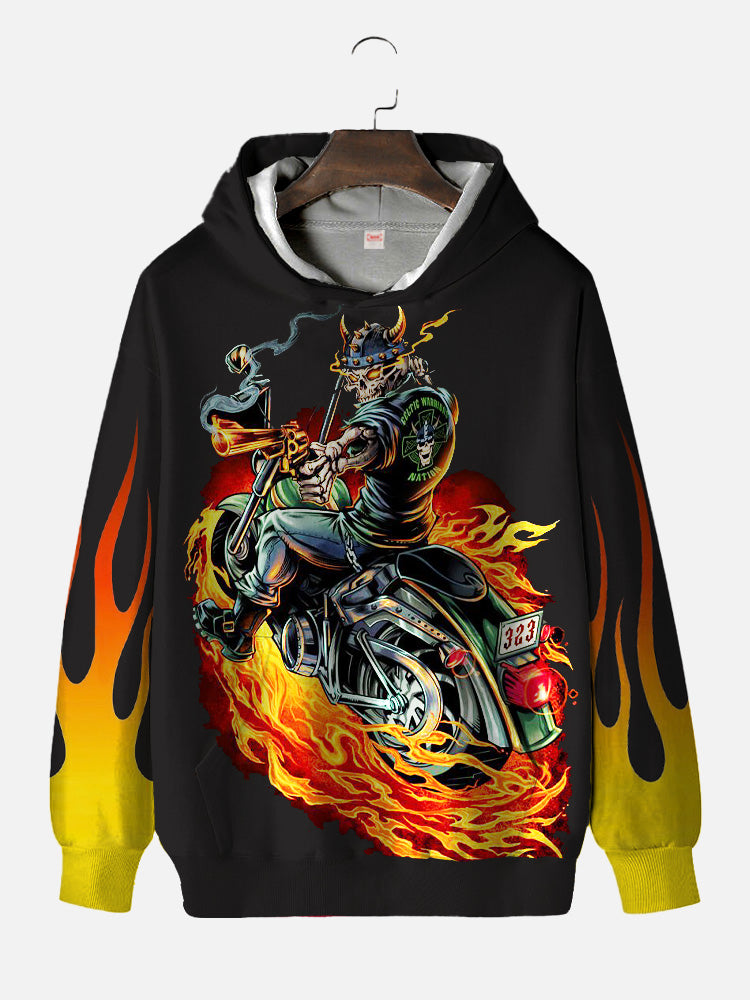 Cool Flame Retro Motorcycle Skull Warrior Printing Hooded Sweatshirt