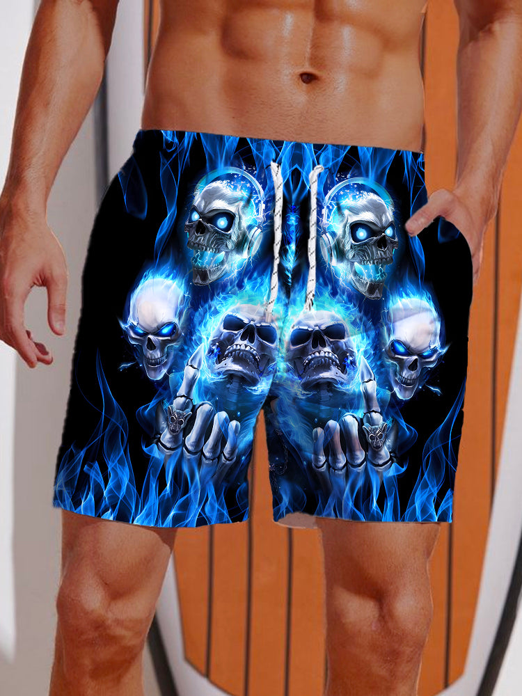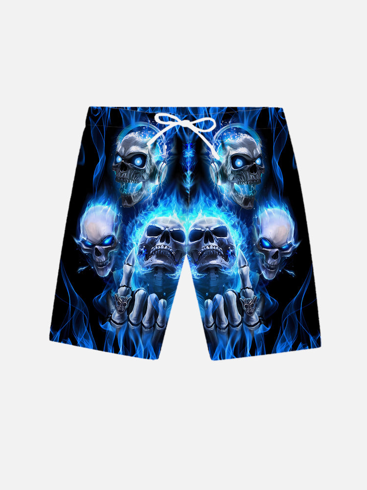 Eye-Catching Amazing Style Blue Electric Flame Skull Printing Shorts