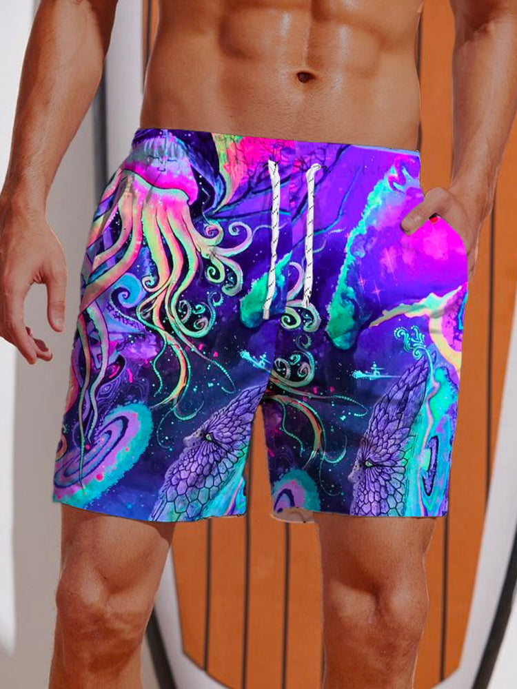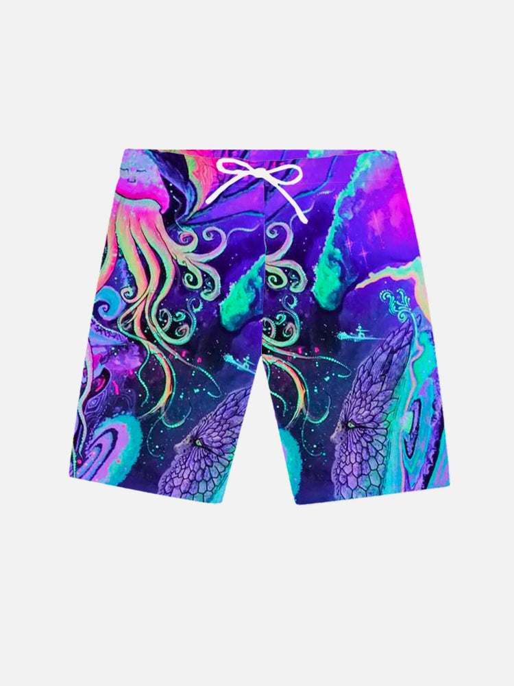 Eye-Catching Psychedelic Colorful Hippie Jellyfish Printing Shorts