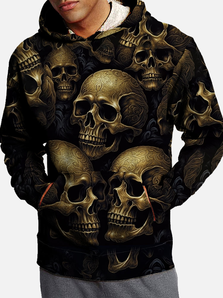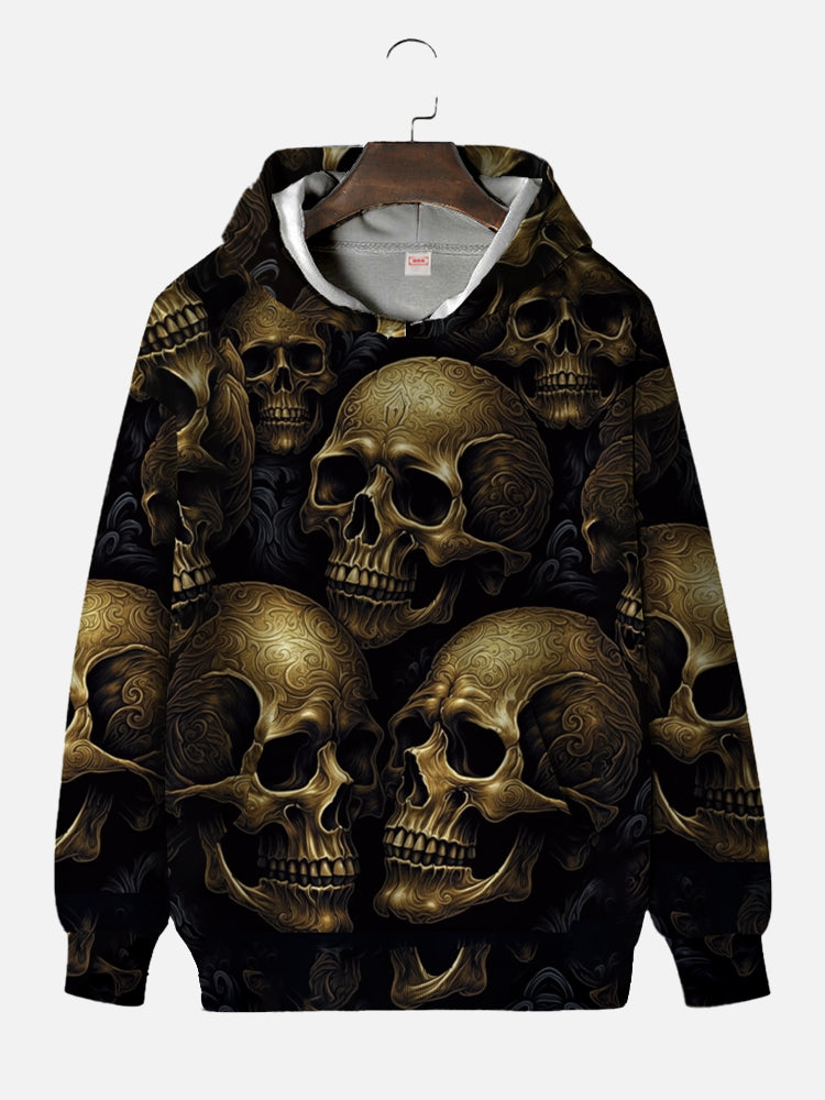 Eye-Catching Mysterious Pattern Metal Broken Skull Printing Hooded Sweatshirt