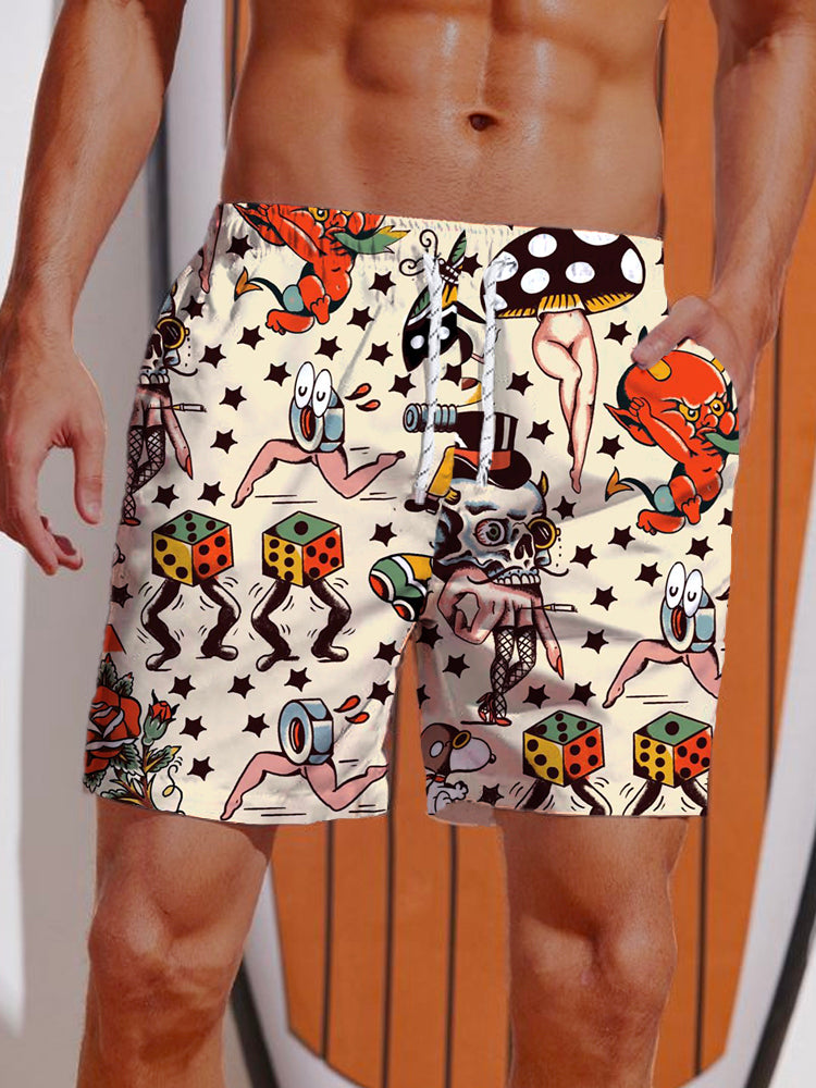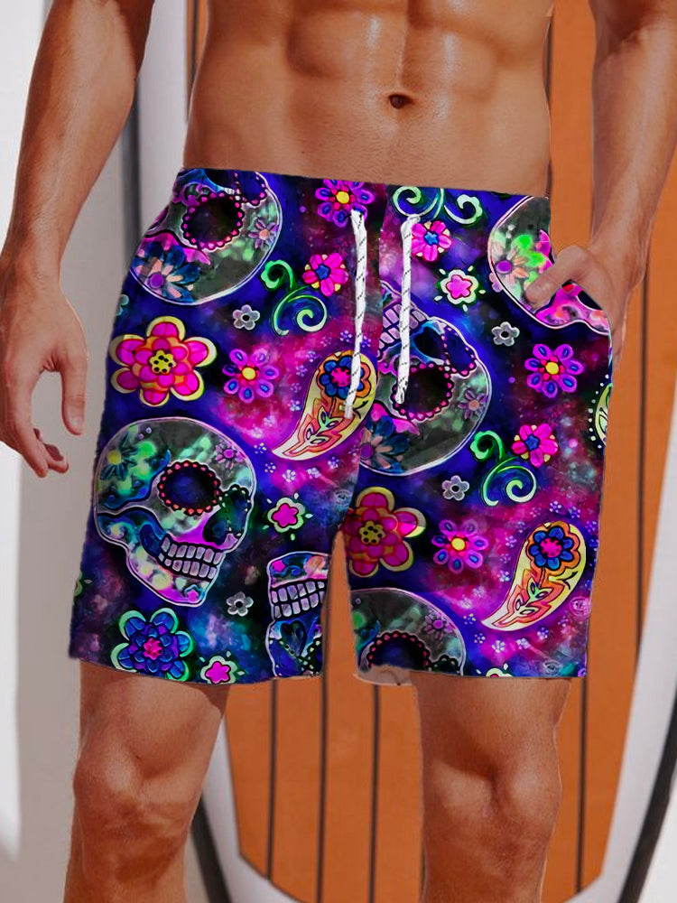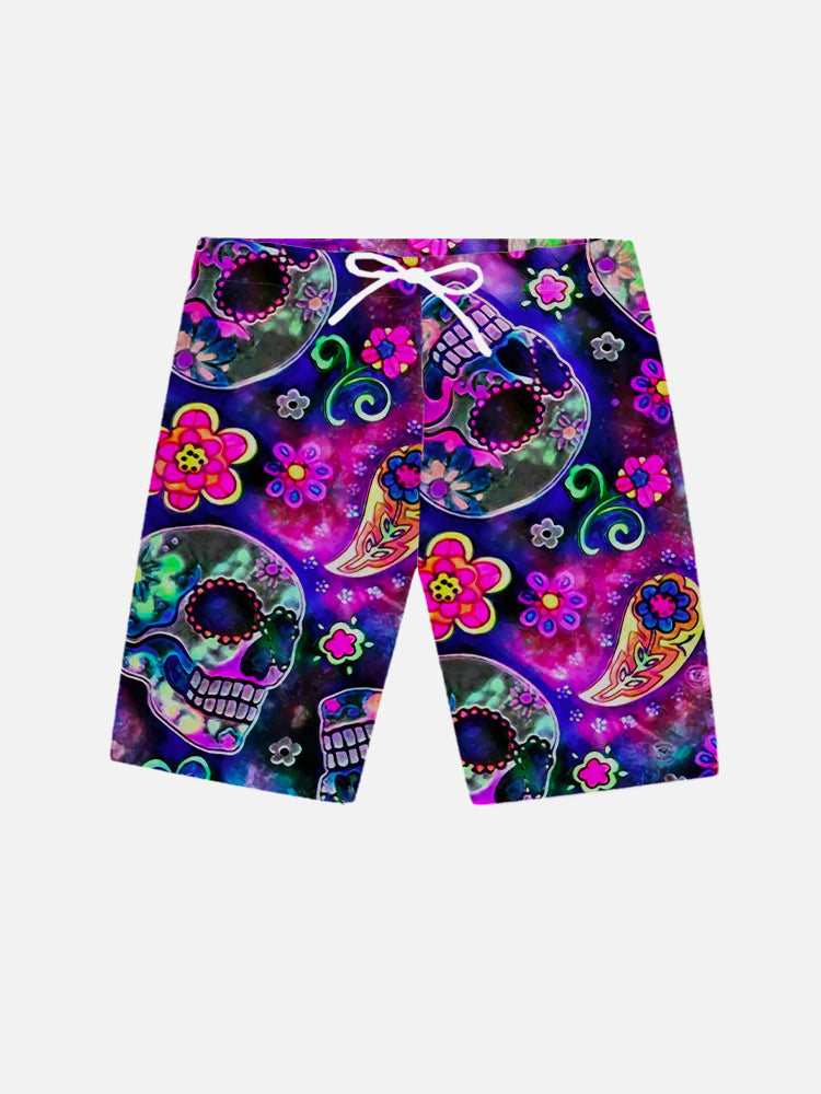 Eye-Catching Psychedelic Colorful Tiny Skull Printing Shorts
