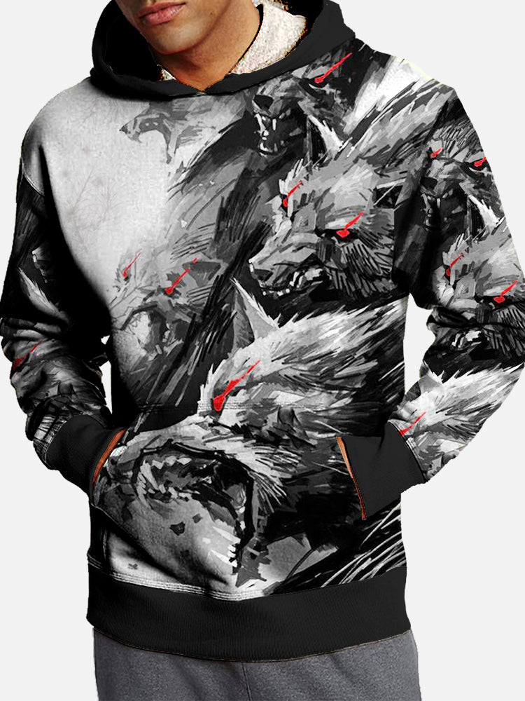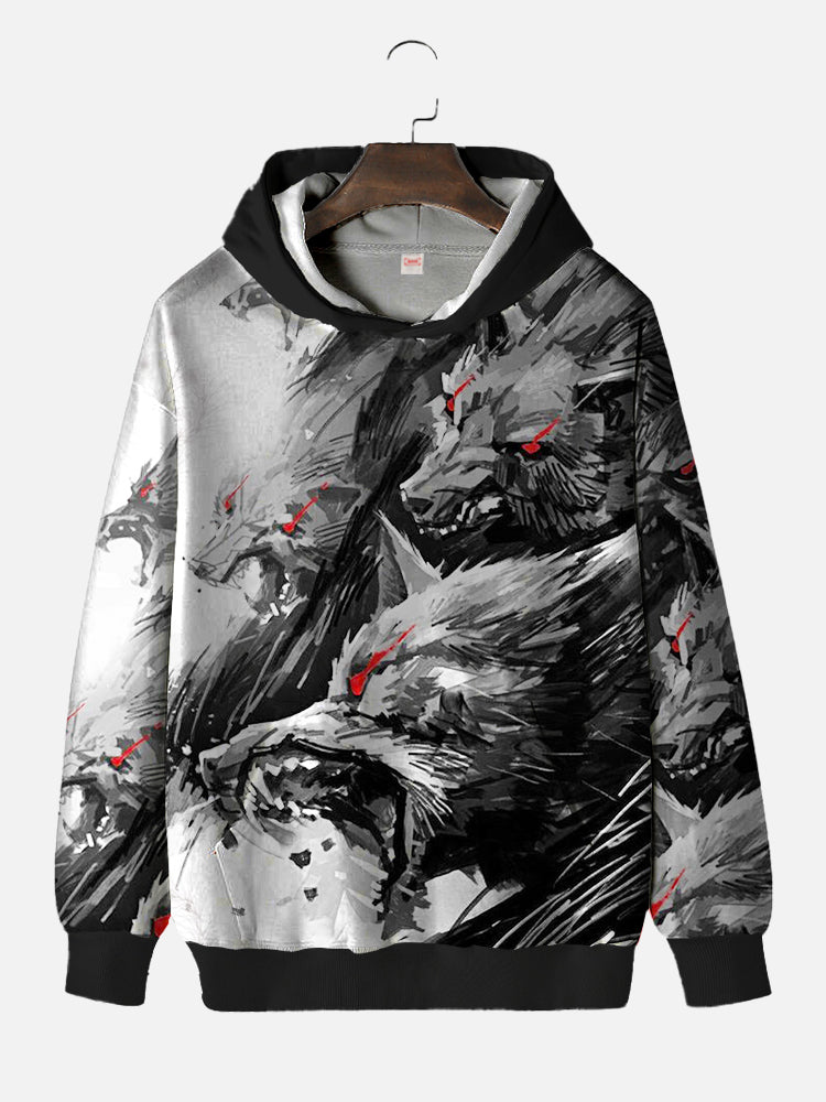 Mysterious Red-Eyed Monster Wolves Printing Hooded Sweatshirt