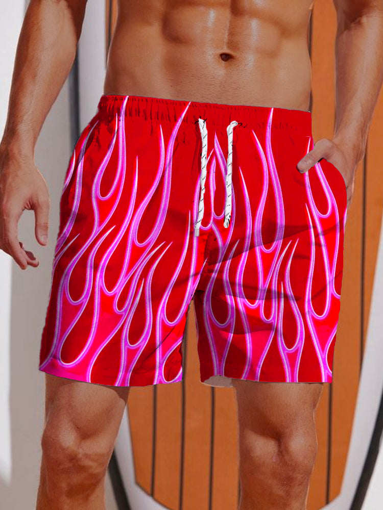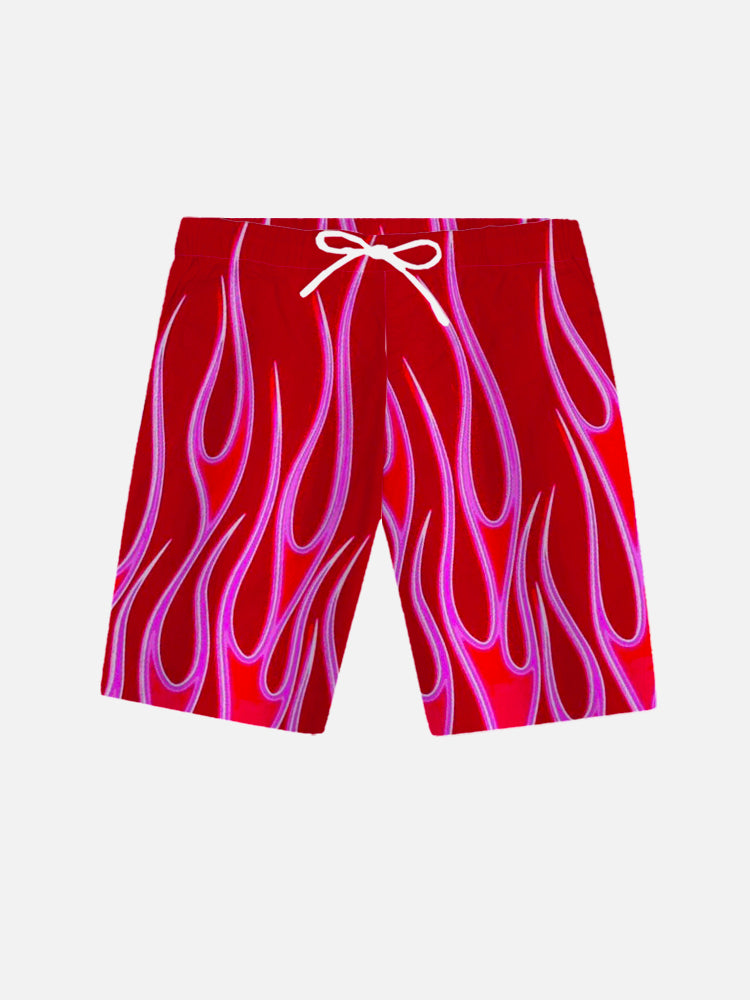 Vogue Deep Pink Fire Flame Pattern Printing Shorts