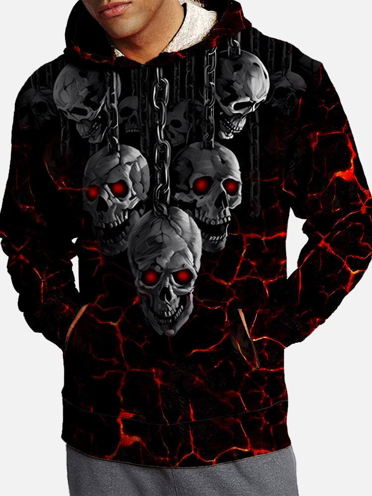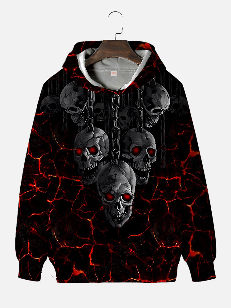 Eye-Catching Amazing Style Lava And Chain Skulls Printing Hooded Sweatshirt