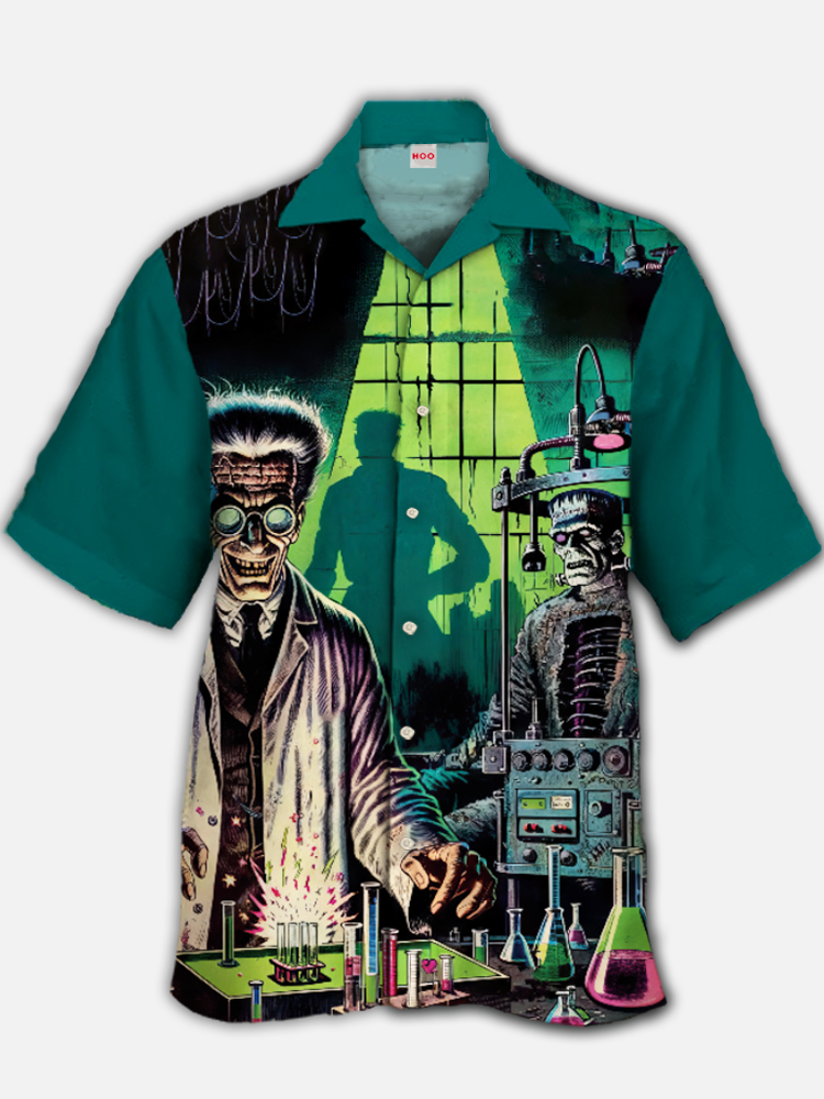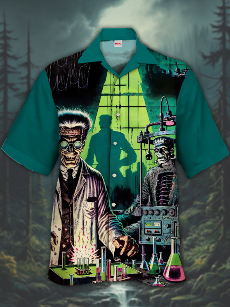 Eye-Catching Sci-Fi Horror Midnight Banquet Printing Cuban Collar Hawaiian Short Sleeve Shirt