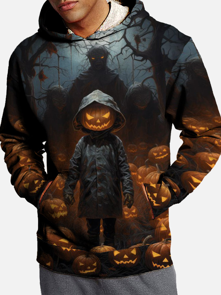 Halloween Monsters Halloween Scary Pumpkin Man Printing Hooded Sweatshirt