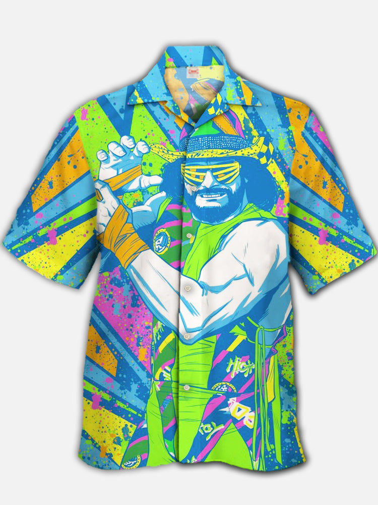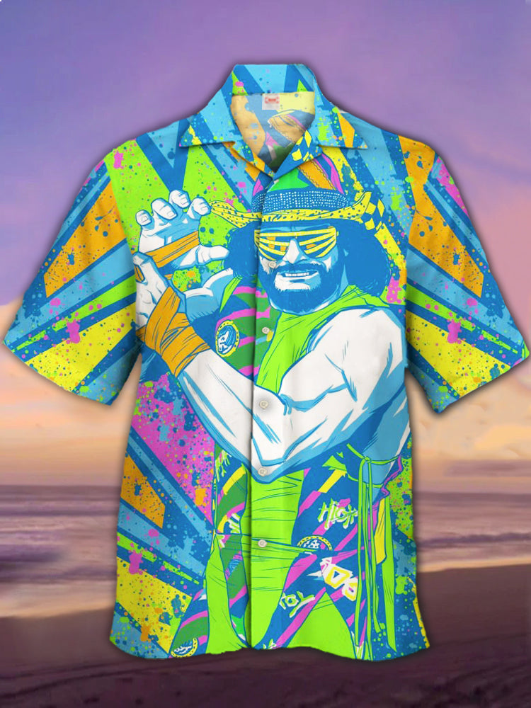 Eye-Catching Colorful Boxer Poster Printing Cuban Collar Hawaiian Short Sleeve Shirt