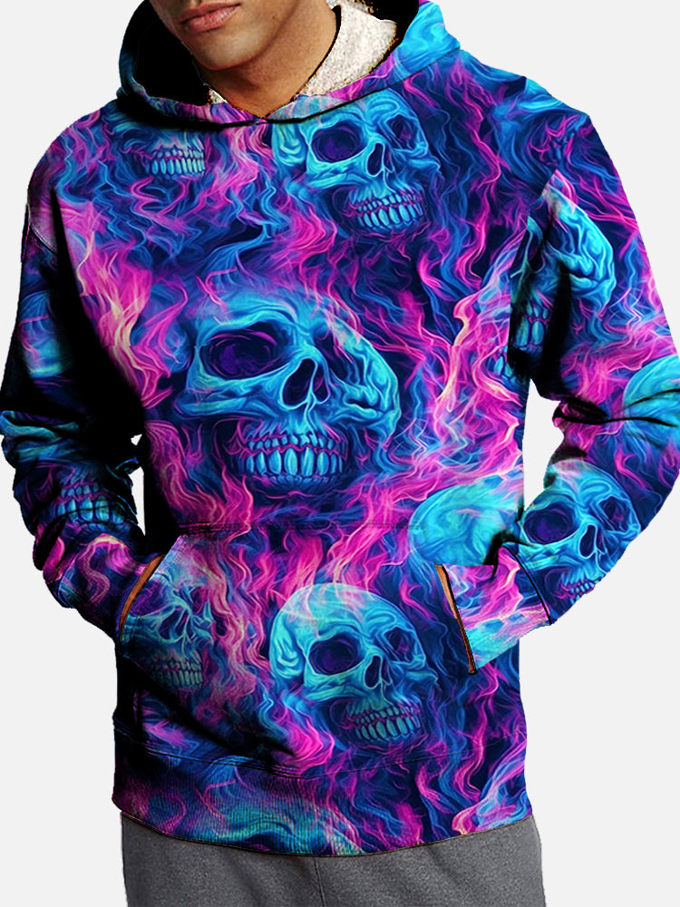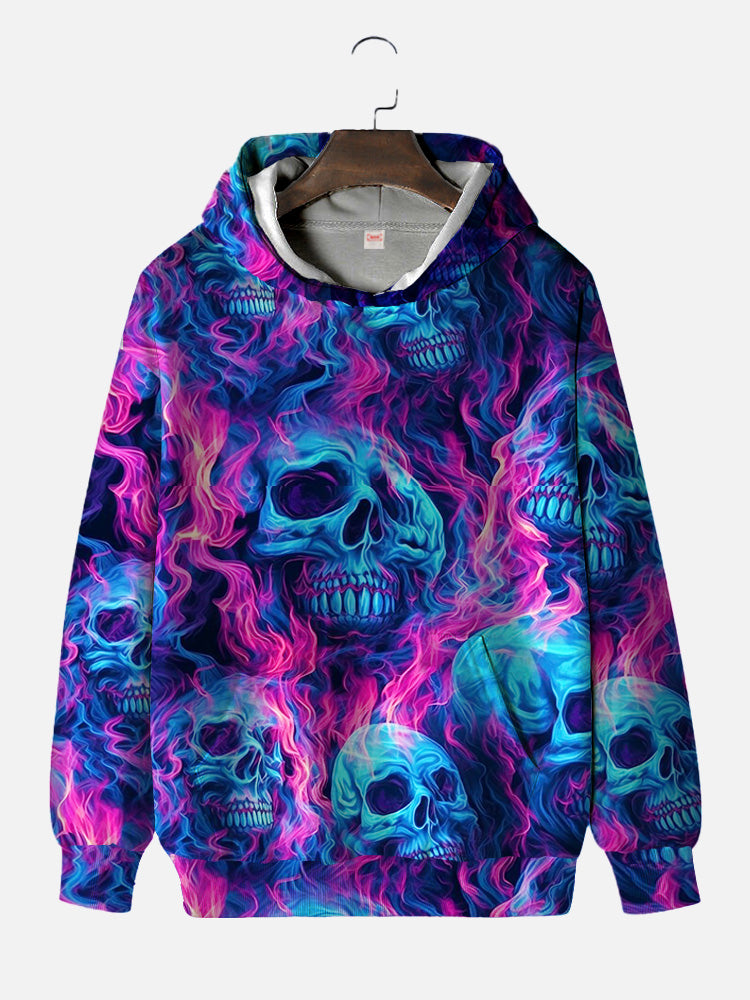 Futuristic Abstract Neon psychedelic Colorful Skulls Printing Hooded Sweatshirt