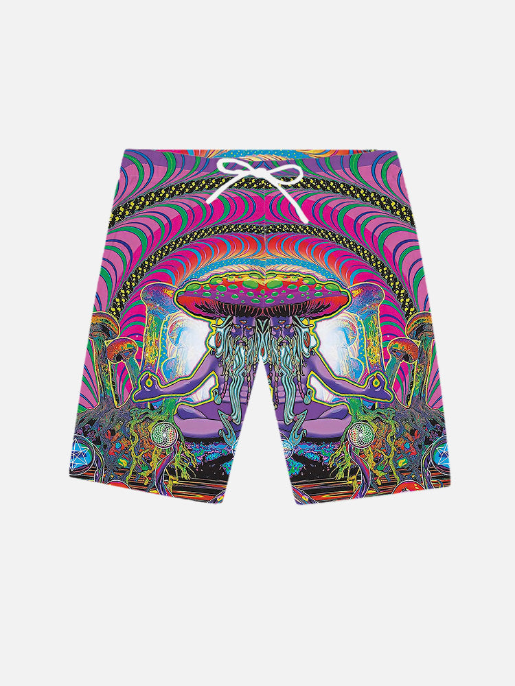 Eye-Catching Psychedelic Stunning Hippie Magic Mushrooms Printing Shorts