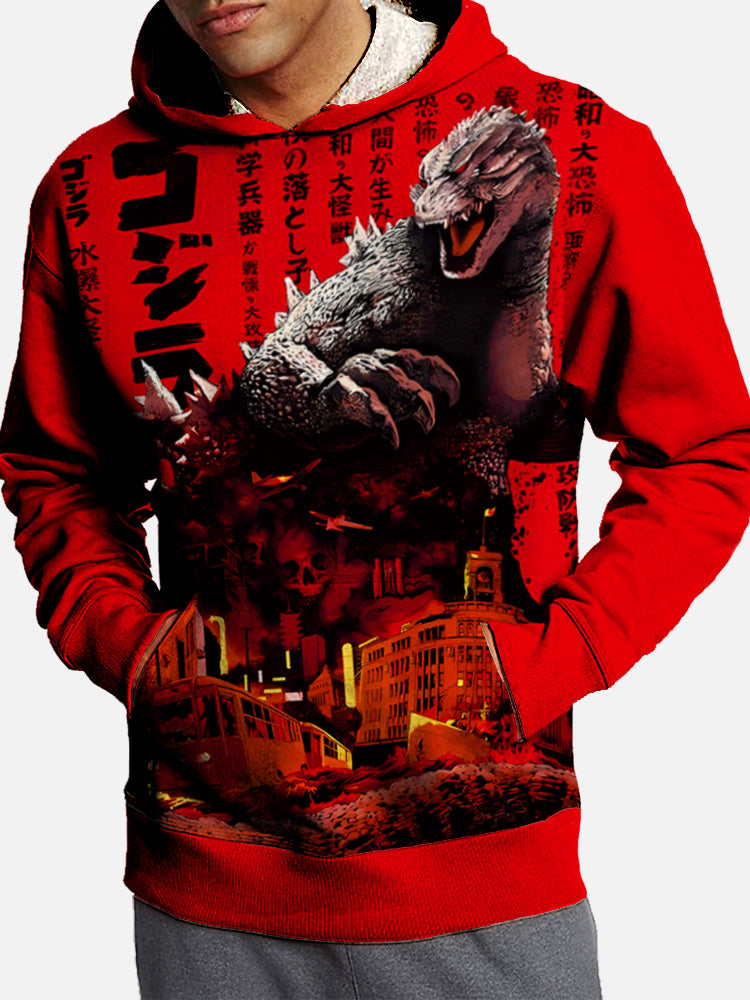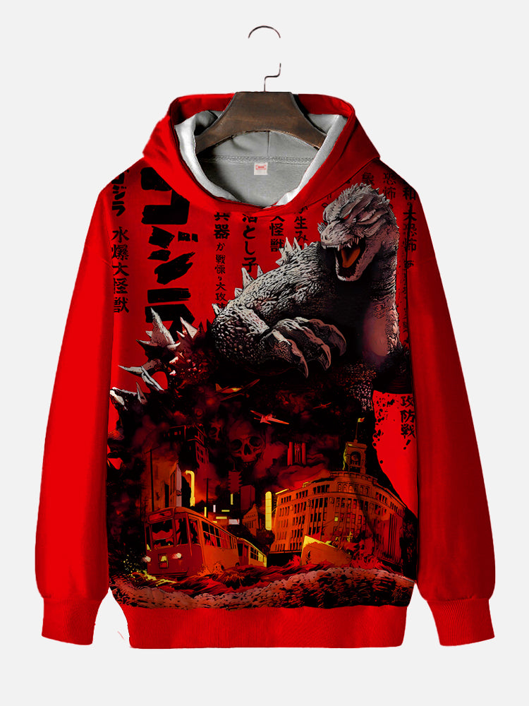Red Giant Monster Godzilla And Cruise Ship Printing Hooded Sweatshirt