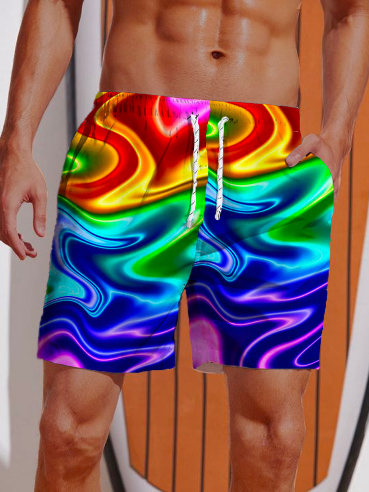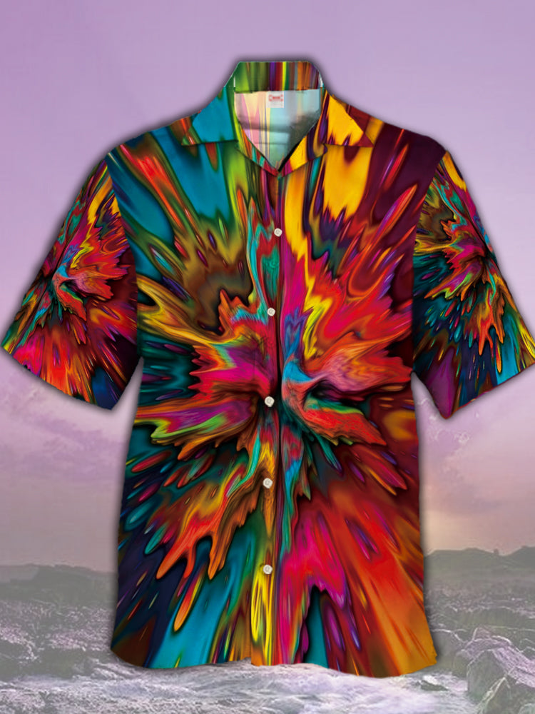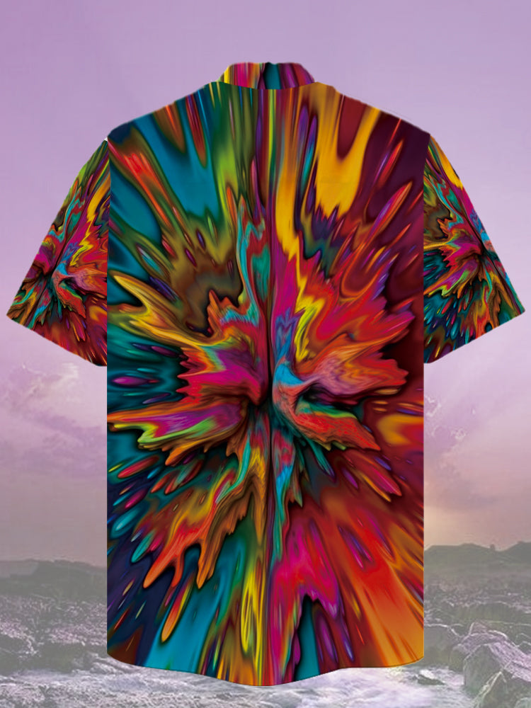 Eye-Catching Jet-like Colorful Mixed Paint Pattern Printing Cuban Collar Hawaiian Short Sleeve Shirt