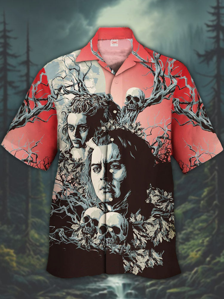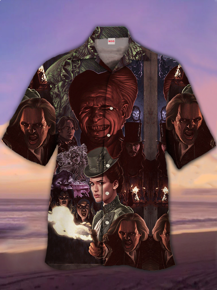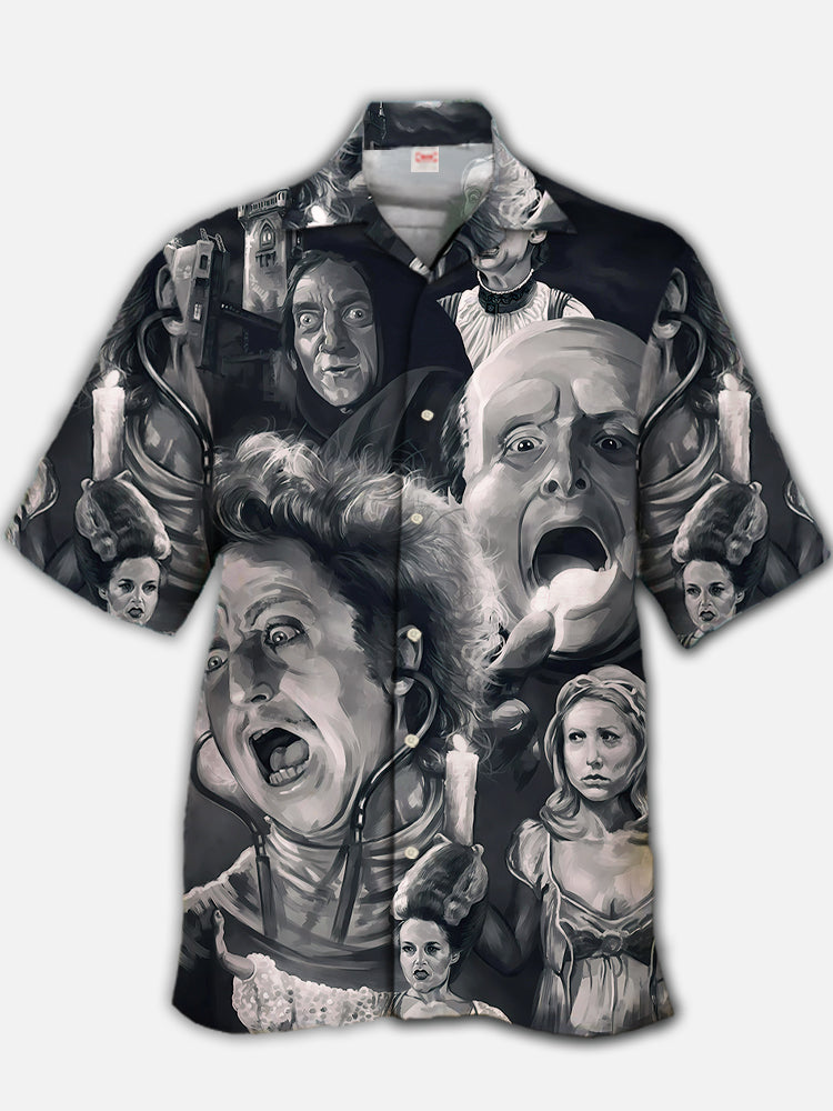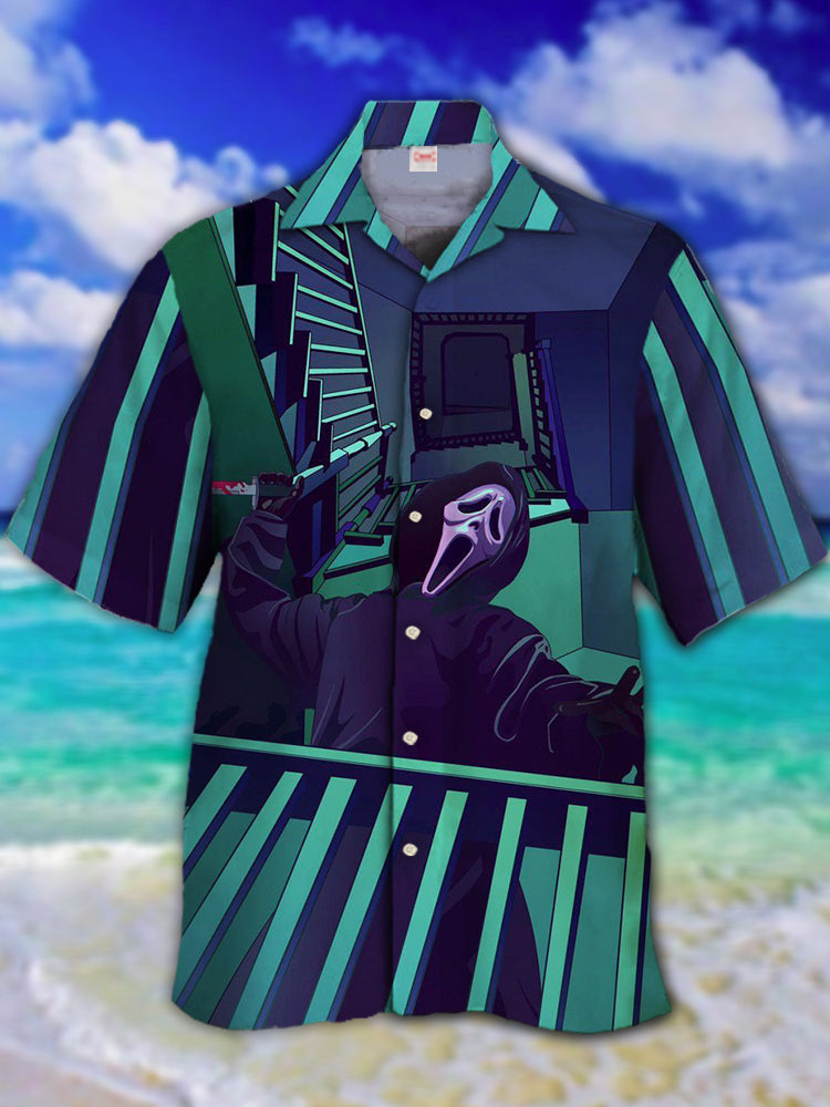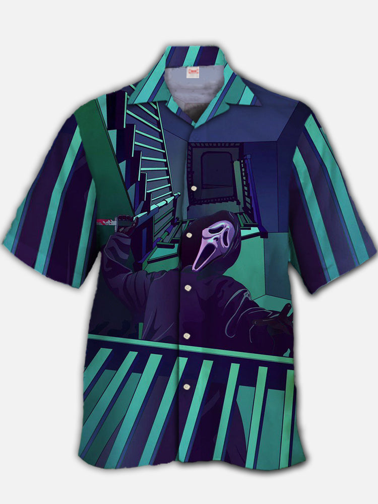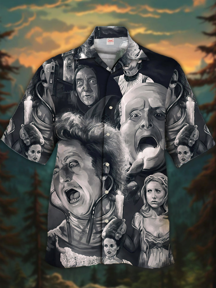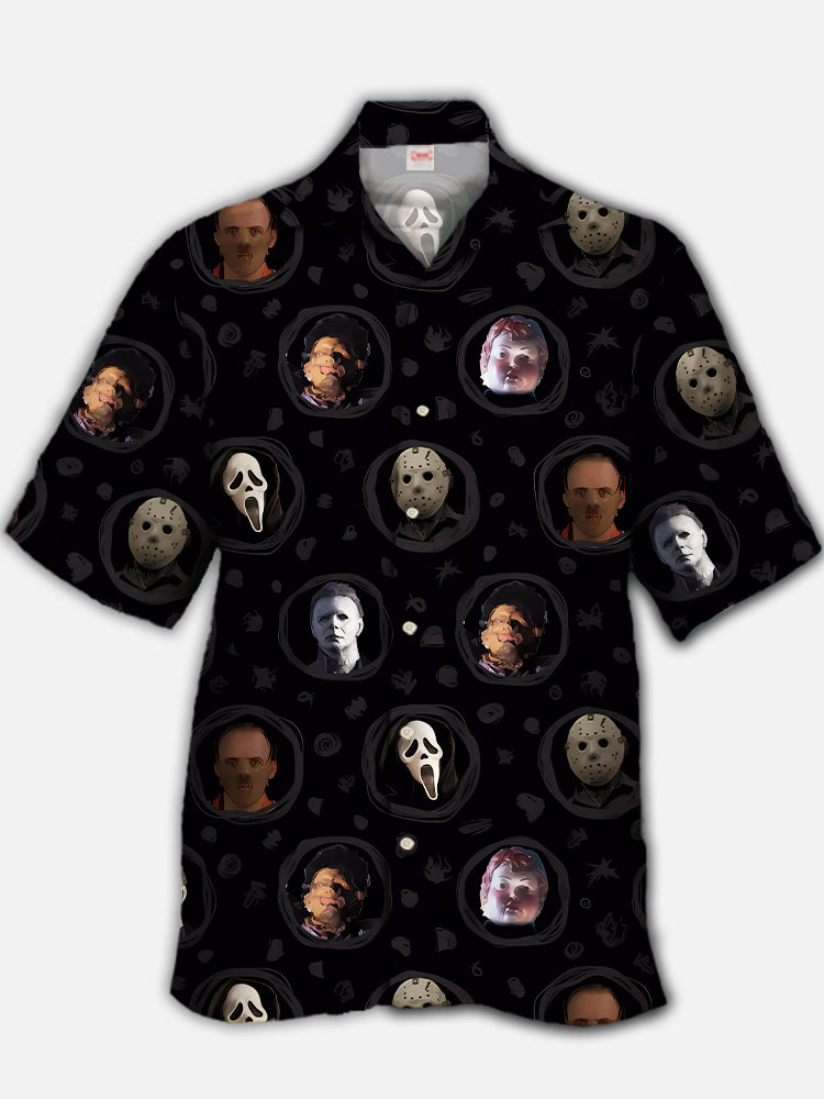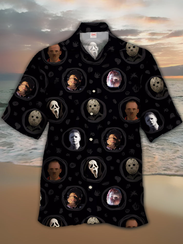 Eye-Catching Classic Thriller Style Horror Movie Characters Printing Cuban Collar Hawaiian Short Sleeve Shirt