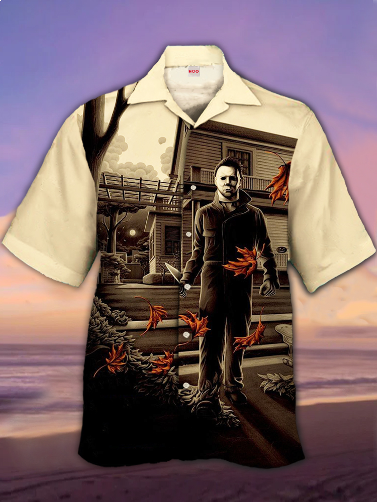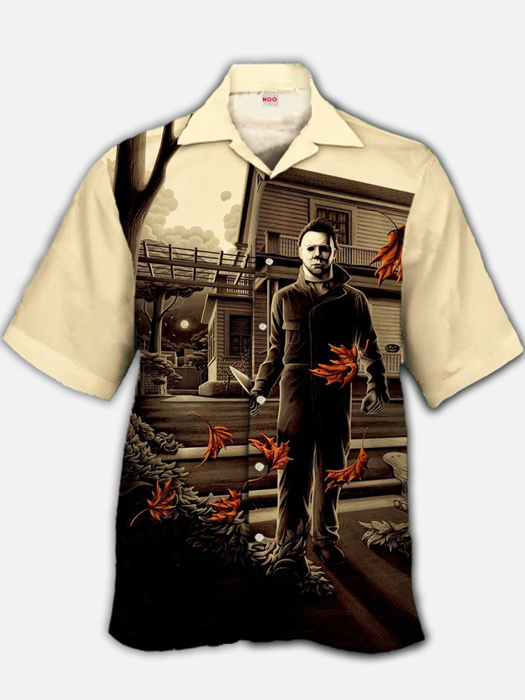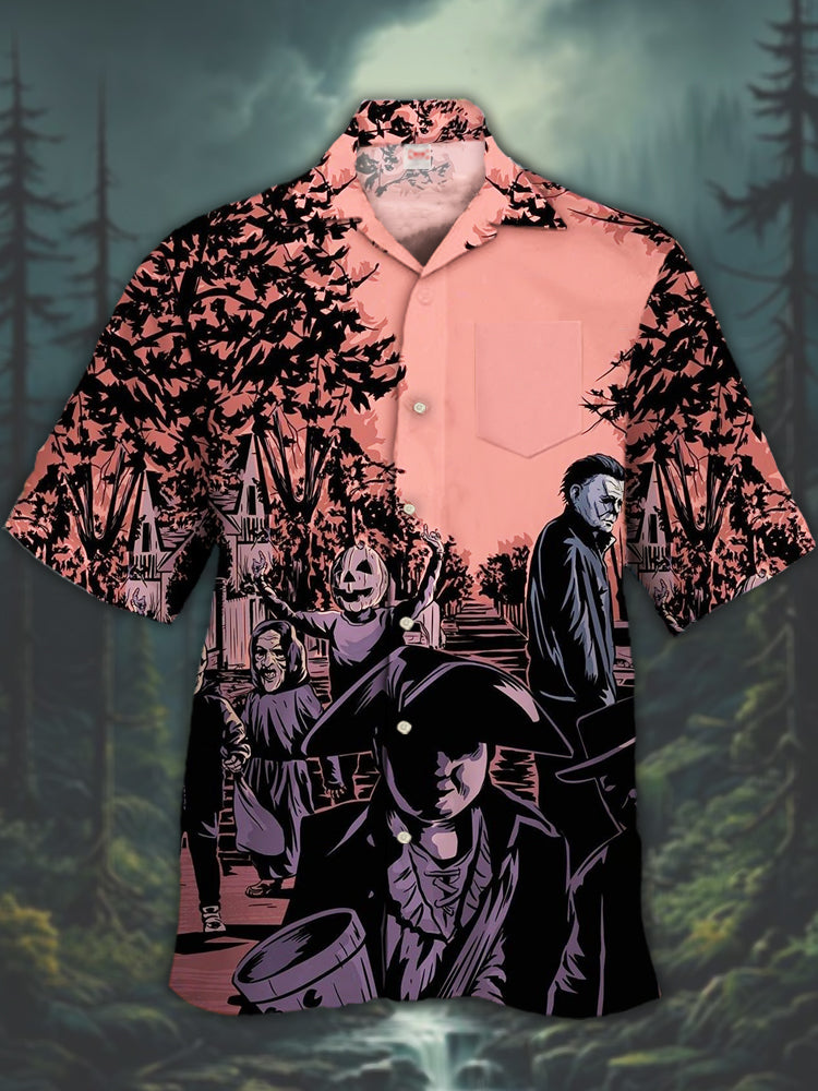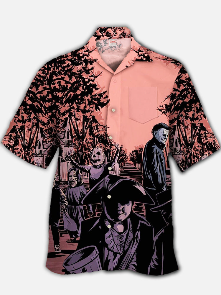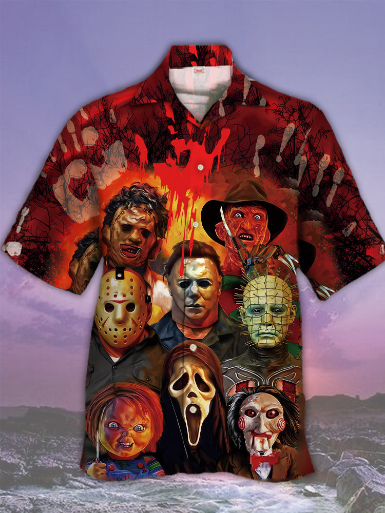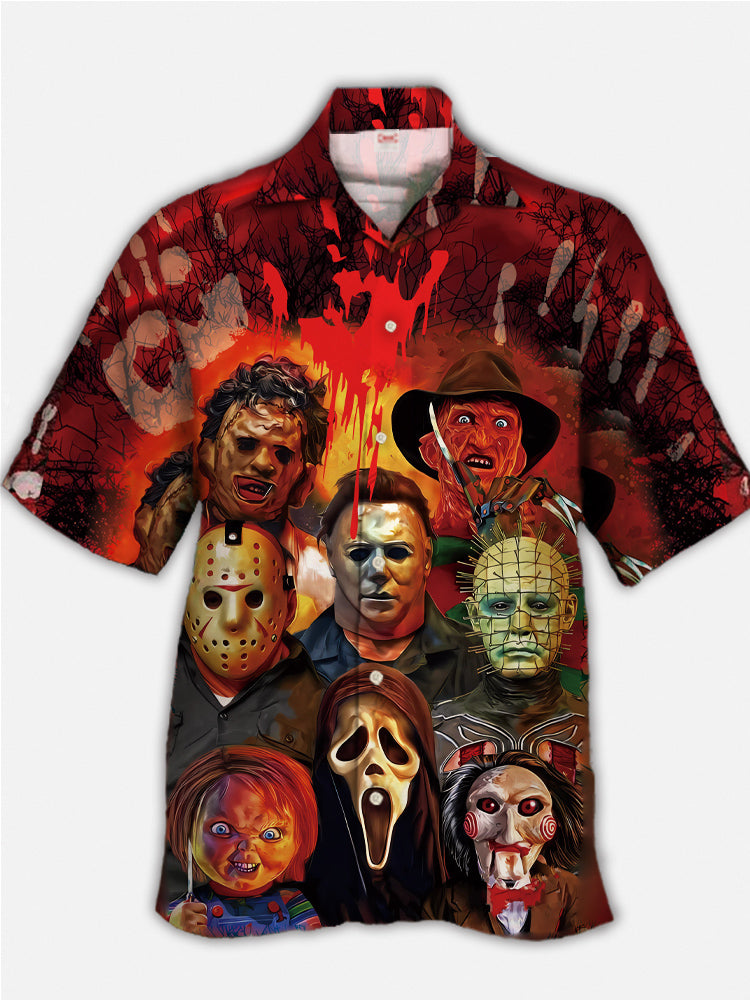 Eye-Catching Horror Life Horror Movie Characters Halloween Printing Cuban Collar Hawaiian Short Sleeve Shirt