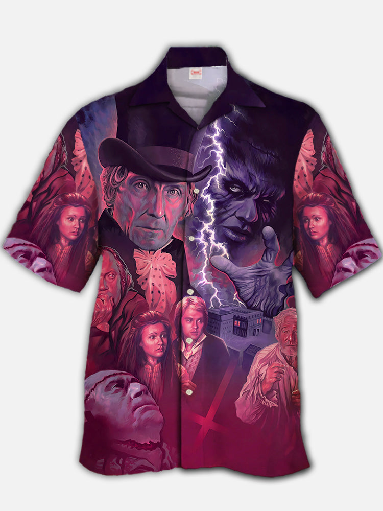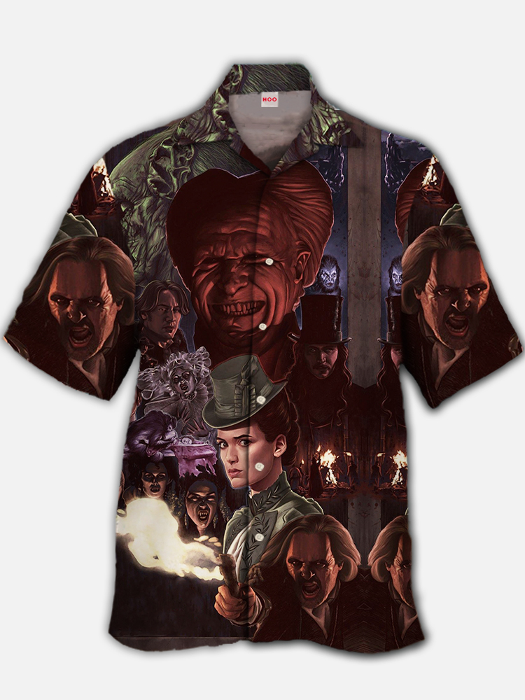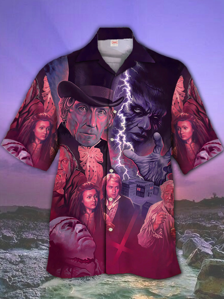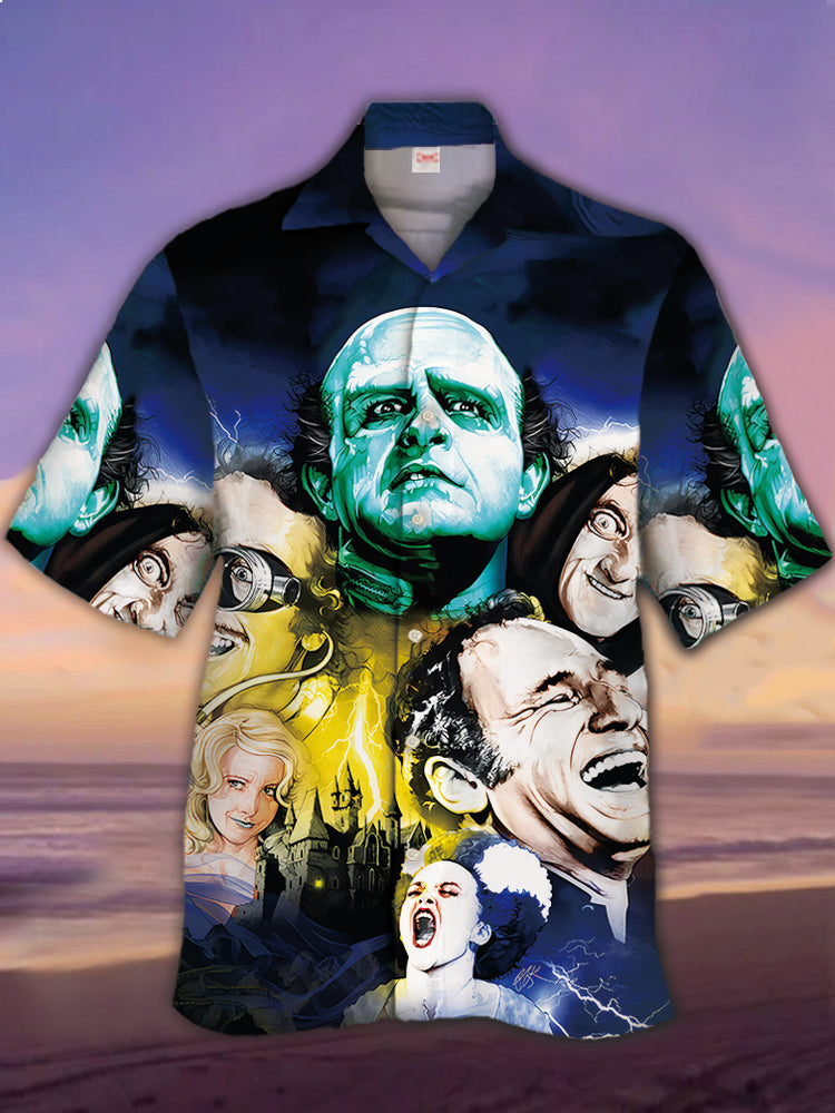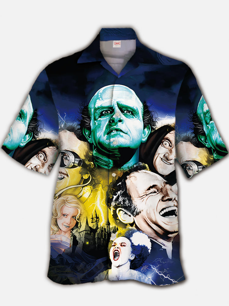 Eye-Catching Classic Horror Movie Vintage Poster Printing Cuban Collar Hawaiian Short Sleeve Shirt