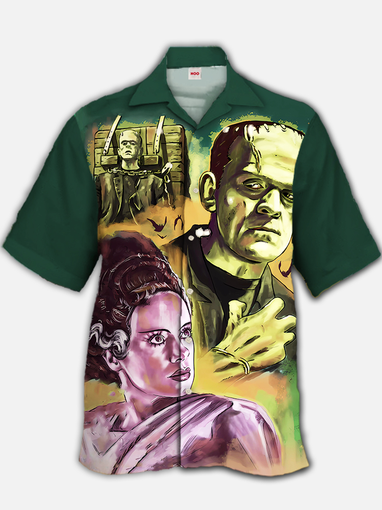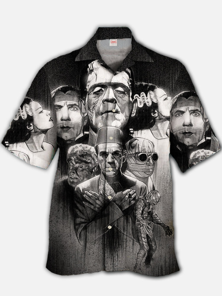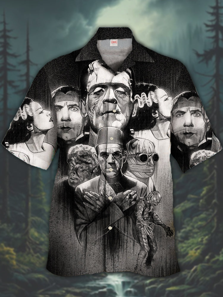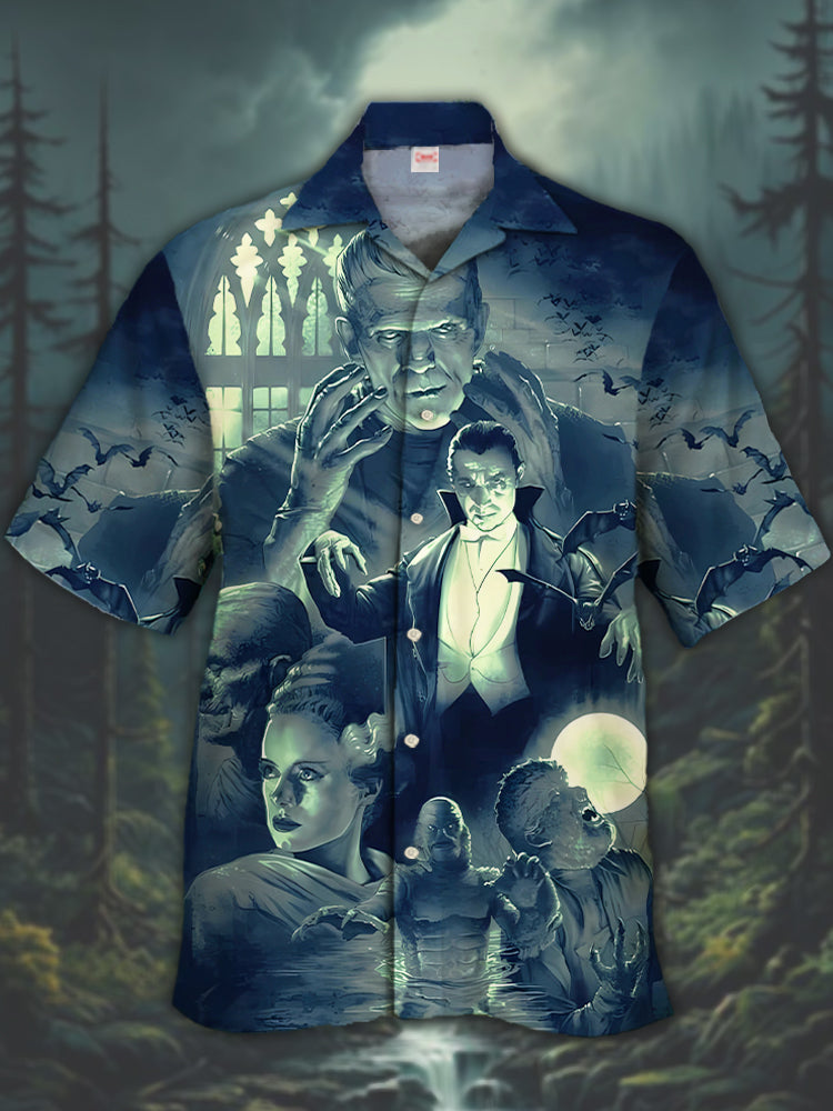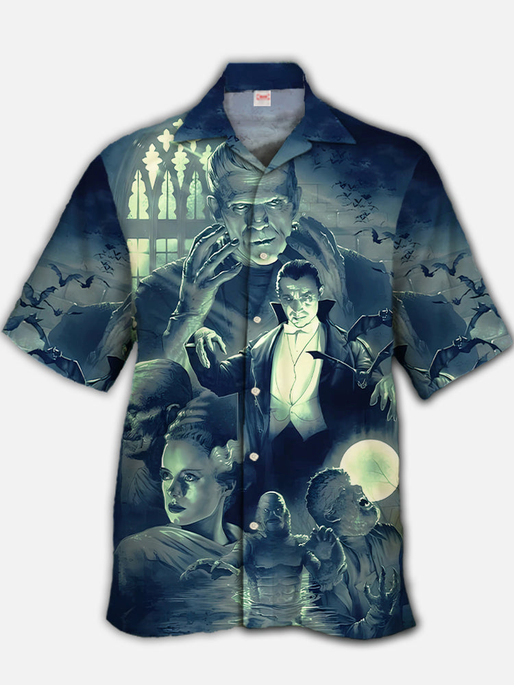 Eye-Catching Comic Art Classic Monsters Characters Printing Cuban Collar Hawaiian Short Sleeve Shirt