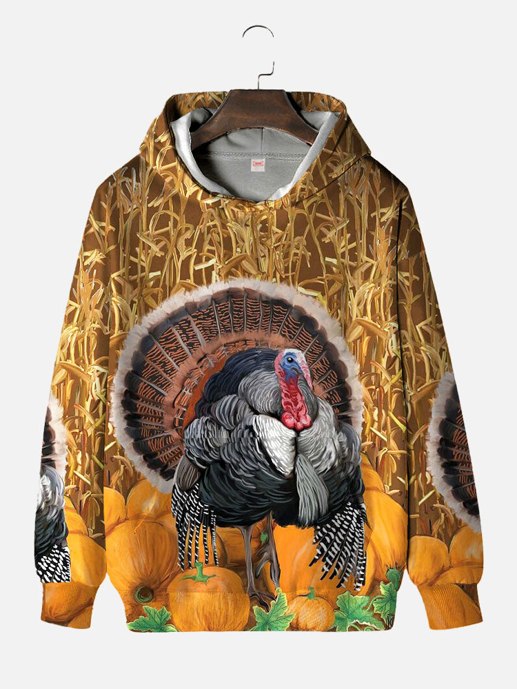 Thanksgiving Turkey Paint Printing Hooded Sweatshirt