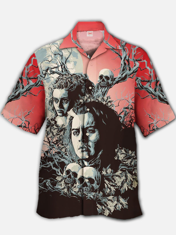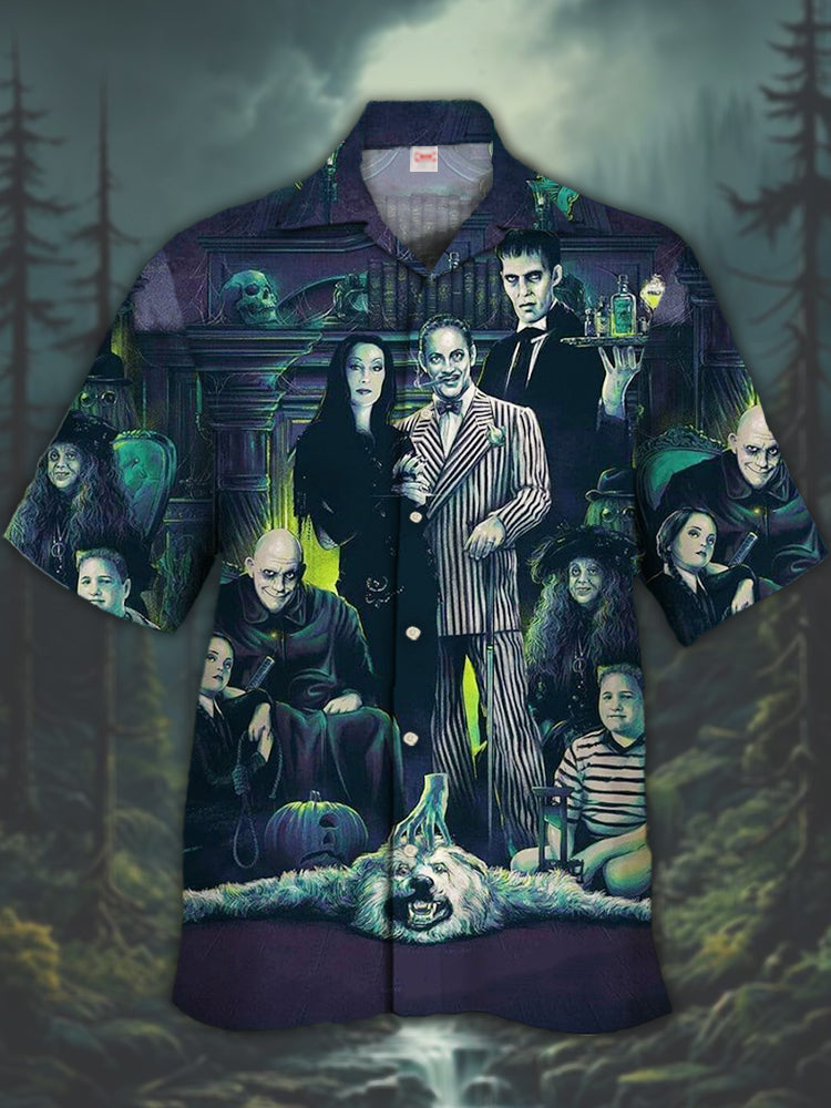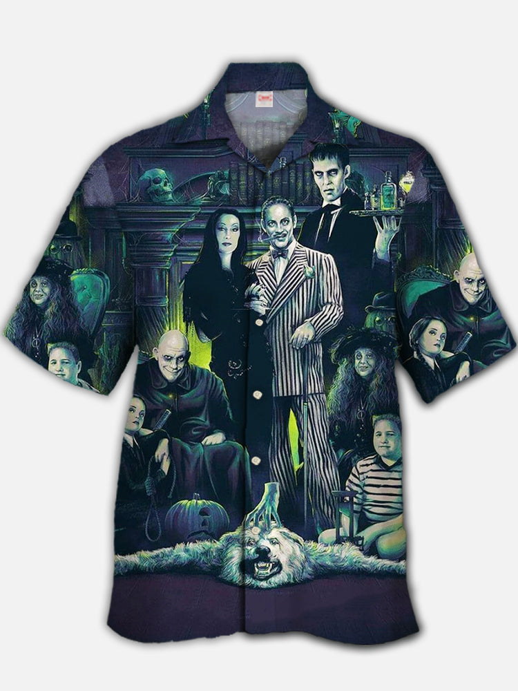 Eye-Catching Thriller Style Horror Characters Family Photo Printing Cuban Collar Hawaiian Short Sleeve Shirt