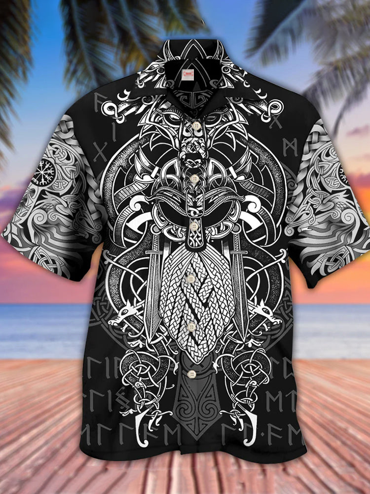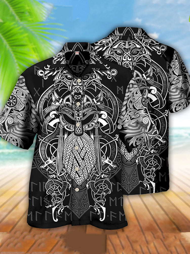 Eye-Catching Viking Warrior Blood Pattern Printing Cuban Collar Hawaiian Short Sleeve Shirt