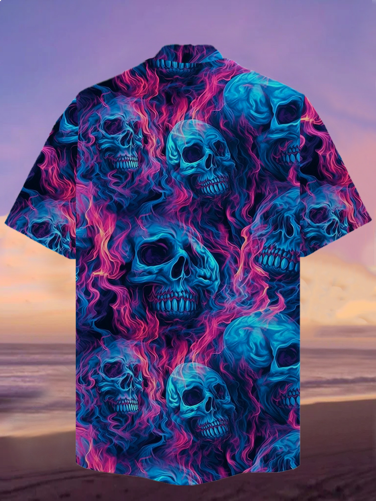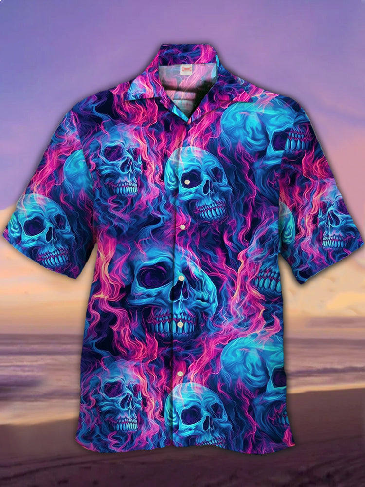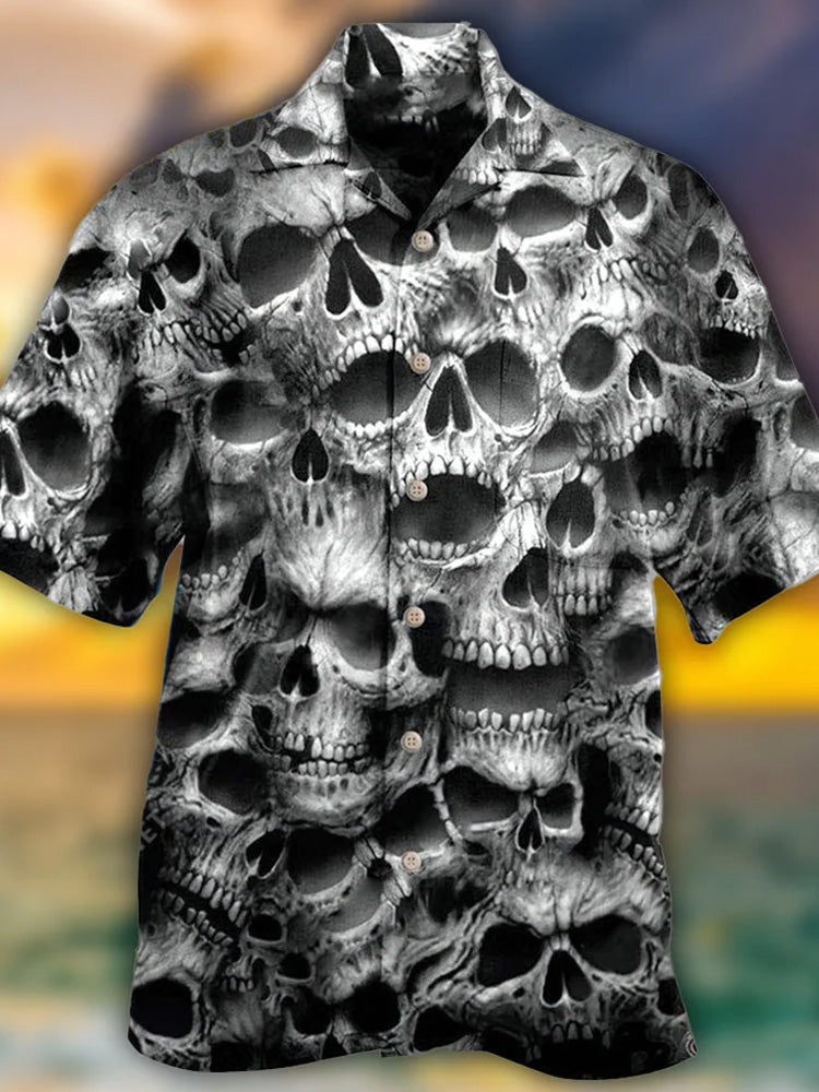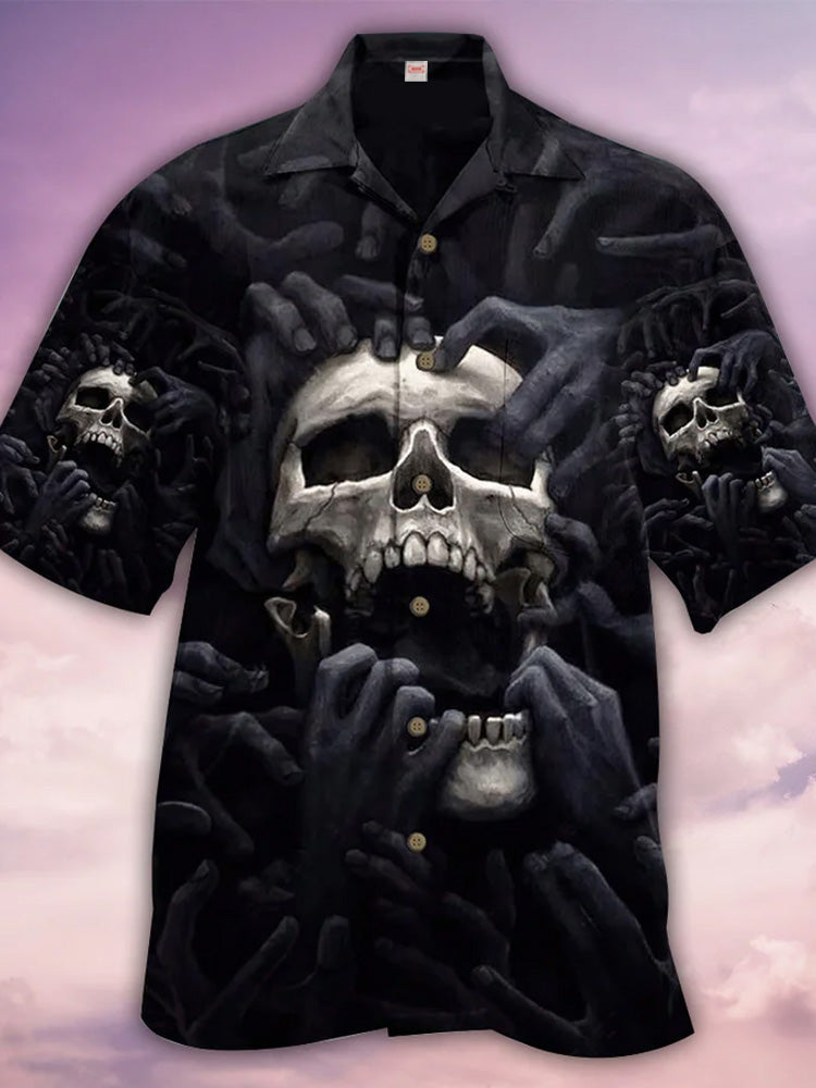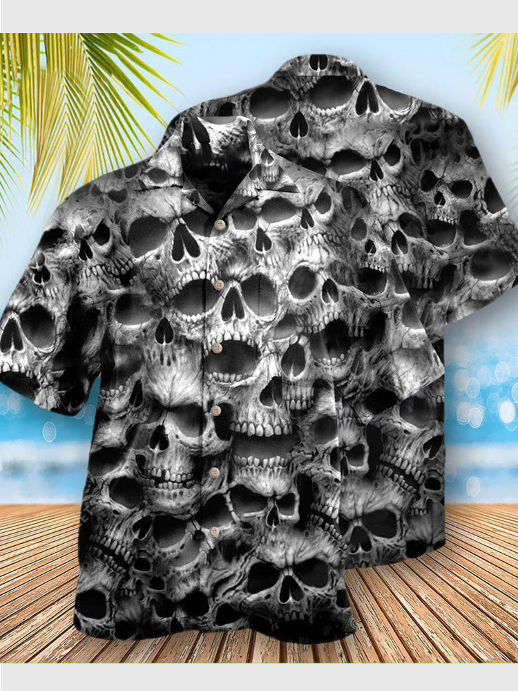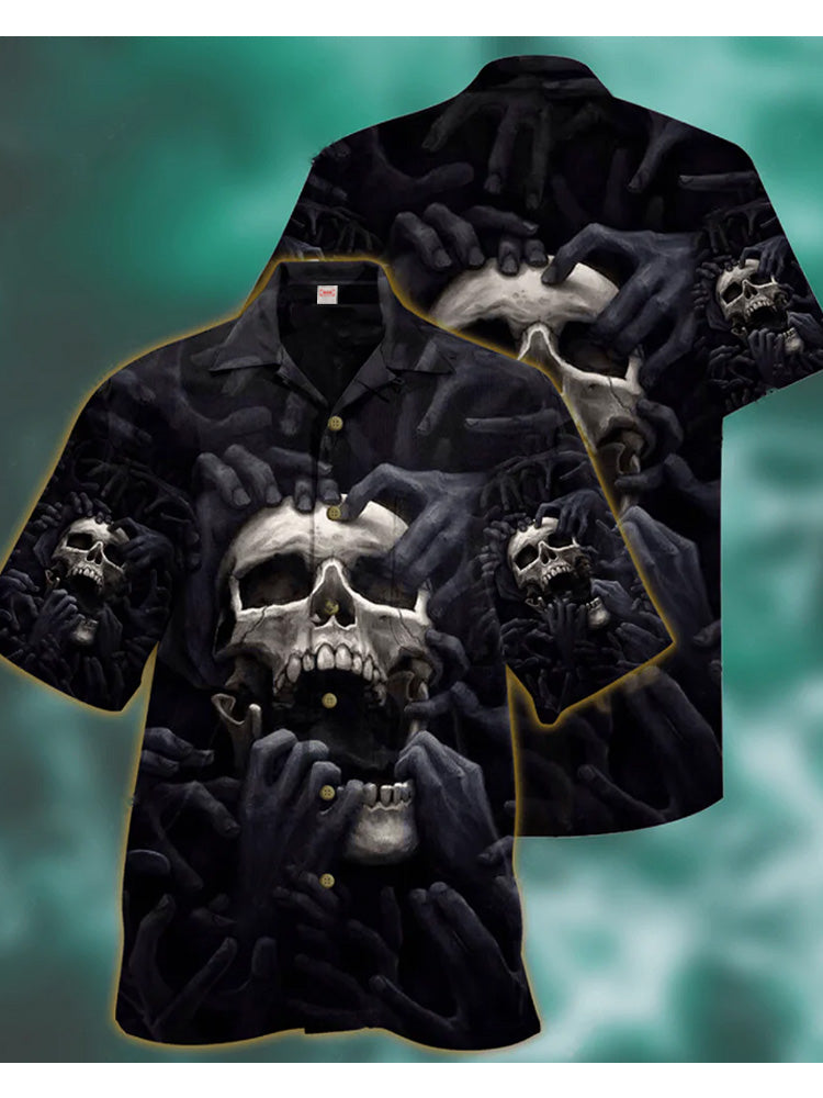 Eye-Catching Skull And Darkness Printing Cuban Collar Carnival Hawaiian Short Sleeve Shirt