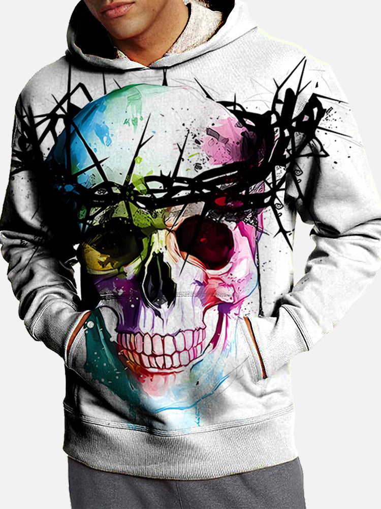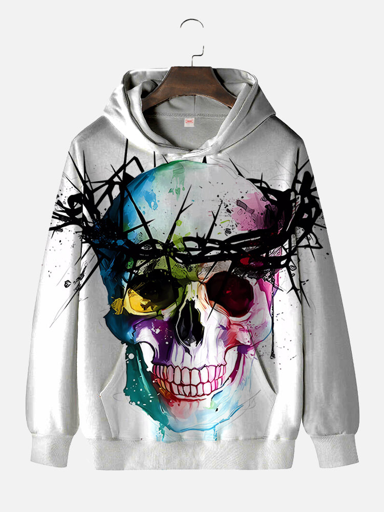 Colorful Devil Smile Skull Art Printing Hooded Sweatshirt