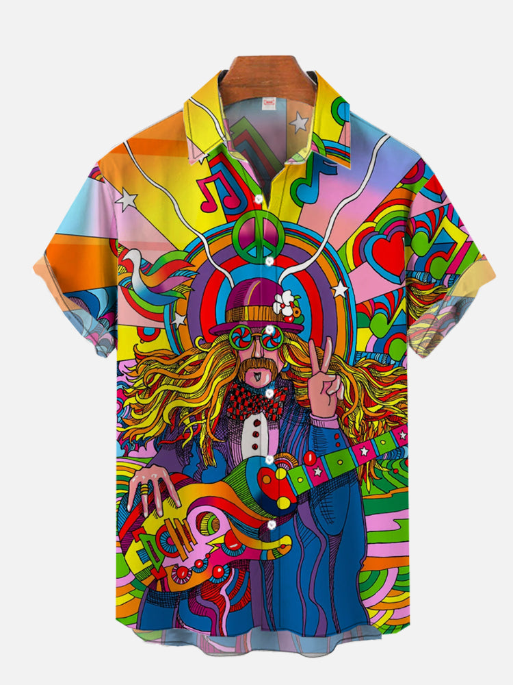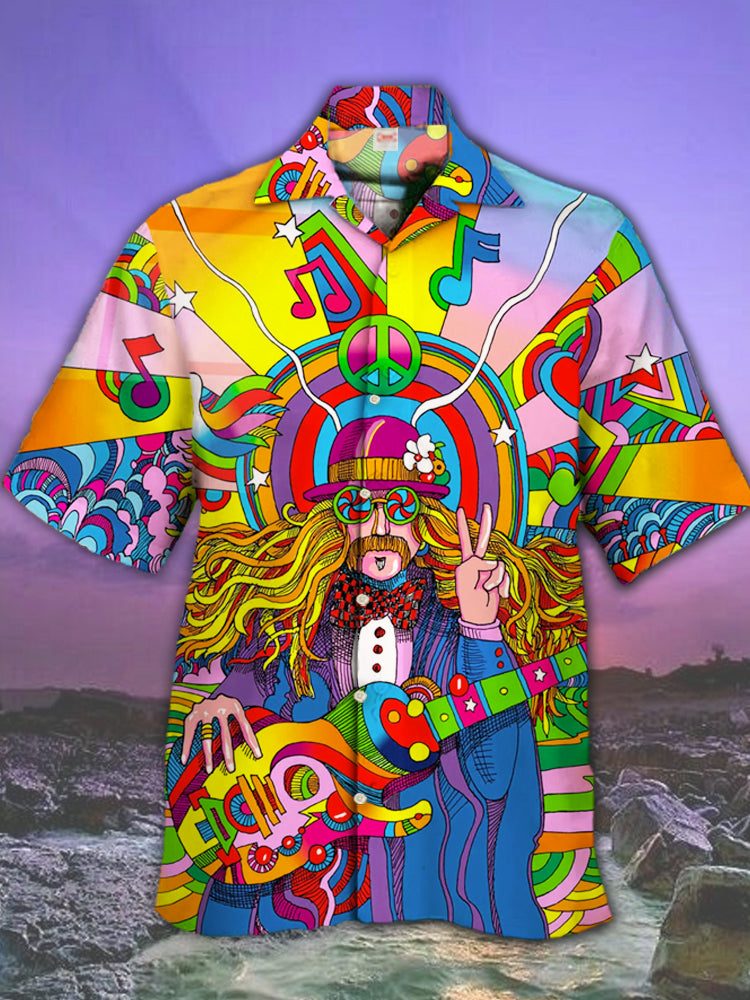 Eye-catching Abstract Colorful Music Love And Peace Printing Short Sleeve Shirt